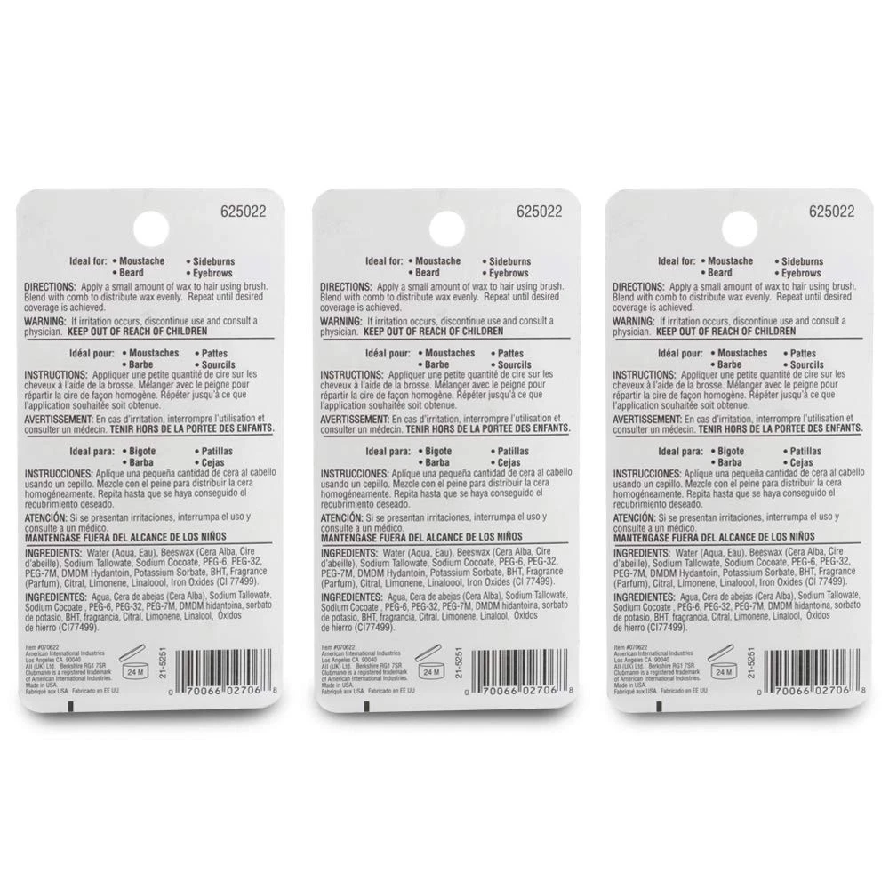 Moustache Wax Hang Pack Black 0.5 oz x 3 packs FLAUNT SOME MUSTACHE COLOR: Flaunt some color or just keep that prized moustache in place by getting this wax hang. The Moustache Wax Hang Pack Black is ideal for moustache styling and color touch up. Just be careful and don’t let the colored blends touch your skin or clothes, as it will stain on contact. This premium mustache wax should be included in your daily routine to achieve that godly 'stache. TAKE THAT STACHE INTO SHAPE: The untamed mustache can be problematic. Knockout everyone with your fresh macho look all the time with this wax from ! This will leave your beard looking well-groomed and maintained. You spent the time to grow that manly beard, and now it’s time to give that lumberjack face some style! NO FLAKING: Coming in a handy tube for hassle-free and no-mess stache styling that’s suitable for everyday use, this facial hair wax is water-soluble so it’s incredibly easy to wash out that you won’t even need to use a lot of soap. Just one lather is enough for the product to get rinsed out of your hair. It can also be reapplied with no build-up. HANDY, PERFECTLY SIZED FOR TRAVEL: Coming in a handy 0.5-ounce tube for hassle-free and no-mess styling that’s suitable for everyday use, the Moustache Wax Hang Pack - Black is made to go everywhere you do, so your mustache will look good even when you’re operating at travel size. It fits in your bag to provide quality shiny styling products when you’re on the go which makes it a great bargain buy that goes a long way! HIGH-QUALITY MEN’S GROOMING PRODUCTS: A true neighborhood barbershop staple, the Pinaud brand and its line of fine men’s toiletries have been the go-to brand for men’s grooming products since 1810. Pinaud makes products without compromise by focusing on only the finest ingredients to cleanse, nourish and protect. They offer a wide range of men’s grooming products that remain true to the brand’s heritage while bringing to market must-haves driven by market trends. Moustache Wax Hang Pack Black 0.5 oz x 3 packs All Natural Moustache Wax Hang Pack - Black is creamy and packed with volumizing and moisturizing ingredients, so the stache stays healthy-looking instead of crispy. It is easy to rework throughout the day so your style always looks fresh no matter what happens to it. This has all the nourishment for healthy, hydrated facial hair and is directed at the man who is looking for a simple, comfortable daily regimen that offers basic, no-frill products that has a subtle scent. Easy To Apply The brush included in this pack has the backbone of boar yet the softness of badger. Feels great on your face and whips up the wax fast. This is also great especially for men who prefer a firmer feel during the facial hair wax application process. It fits comfortably in your hand and provides good control and its size also makes it an excellent stache brush. Shipping We offer FREE shipping on all orders! We ship within Three business days of payment, usually sooner. We use a selection of shipping services such as UPS, FedEx, USPS etc. We only ship to the lower 48 states, no APO/FPO addresses or PO Boxes allowed. Local pickups and combined shipping options are not provided at this time. Return You can return a product for up to 30 days from the date you purchased it. Any product you return must be in the same condition you received it and in the original packaging. Please keep the receipt. Payment We accept payment by any of the following methods: PayPal Please pay as soon as possible after winning an auction, as that will allow us to post your item to you sooner! Feedback Customer satisfaction is very important to us. If you have any problem with your order, please contact us and we will do our best to make you satisfied. Contact Us If you have any queries, please contact us via ebay. We usually respond within 24 hours on weekdays. Please visit our eBay store to check out other items for sale! Thank you for shopping at our store.