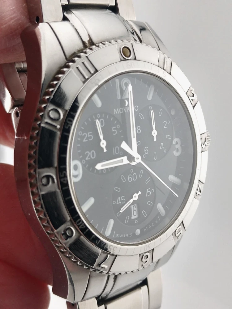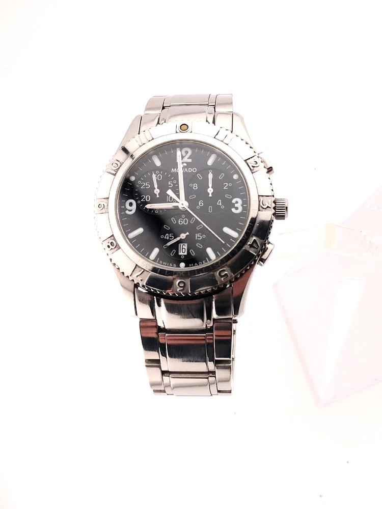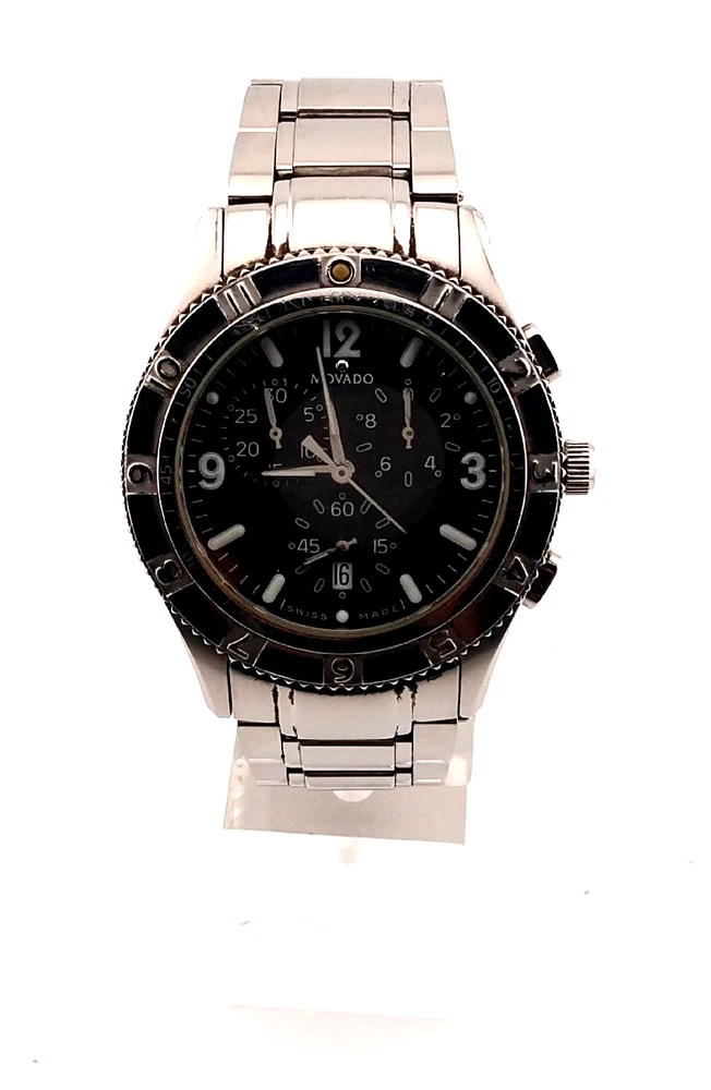 grandpa don’s mostly movados Make/Model/Serial Number: Movado Men's Junior Sport Chronograph Watch w/BlackDial, Stainless Steel Case & Bracelet/Model #:84.F9.1890/Serial #:81045XX Description: The beautiful men's watch has a stainless steel bracelet and case also made of stainless steel with sapphire glass Black Sunray dial with the iconic Movado “Rising Sun” silver circle below the 12 o’clock marker. Three silver subdials including two for the chronograph and one for the small second hand. Central second hand, date inset at 6 o'clock. Hour indices and hands are all luminous for easier viewing during dark hours. This elegant timepiece is very accurate and naturally the chronograph works perfectly as well. As comfortable at the 18 th green or tonight’s formal soiree. The overall diameter is 36mm w/o the crown, 40mm w/crown, case thickness is 7mm, width of the stainless steel bracelet is 18mm. As can be seen in the photos, it is a wonderful model of high quality. As with all of the watches we sell, they have been reconditioned and authenticity is guaranteed – this watch works great and shows well. If you are looking for a moderately priced Movado watch then look no further. This package includes both, a beautiful new genuine Movado presentation box and outer protective box. And...I cordially invite you to visit GrandPa Don's Mostly Movados Ebay Store at gmdd0929 where we have more than 200 new and reconditioned Movado Watches for sale as-well-as a number of other goodies... GrandPa Don's Rating: 5 This watch is in excellent condition. Mechanical sound and Aesthetically Pleasing. Battery was changed in August 2025 which should provide years of trouble free service to the new owner. Item Material Details: Metal Stainless Steel The watch you receive is refurbished to the best possible condition and assigned a present condition number from 3-5 (see below). The battery in your quartz watch is guaranteed to have been replaced within the past 6 months. All of our watches are shipped in a display/storage box that in most cases, corresponds to the brand. Notes: è Unfortunately, due to concern with the high levels of fraud, orders through Ebay that have non-matching shipping/billing address will be cancelled. è Pictures detail the watch and box you will receive. At no additional charge, you will receive either a new or historically accurate Movado box/presentation case. è Where possible, I have added links to increase the size of the band to fit a larger wrist. è No other accessories are included other than what is shown in photos. Please closely access photos for condition and message us with ANY QUESTIONS prior to purchase. è The watch you purchase has been checked and monitored for a period of time before being listed and sold and rechecked before shipment. Once the watch is received and confirmed to be working properly, our responsibility ends, for obvious reasons we cannot issue a guarantee after purchase as we have no control as to what may happen to the watch once it leaves our possession. Shipping: è SHIPPING IS PAID BY THE BUYER. EXTRA INSURANCE ON PURCHASES THAT EXCEED $300 ARE PAID BY THE SELLER è BILLING AND SHIPPING ADDRESS MUST MATCH WHAT I AM GIVEN BY EBAY OR WE CAN NOT SHIP OUT ITEMS è Ships within the continental US ONLY, through USPS Priority Mail, USPS Ground Advantage OR UPS Ground – YOUR CHOICE è A WORD ABOUT SHIPPING – I HIGHLY RECOMMEND USPS PRIORITY SHIPPING FOR THE FOLLOWING REASON: Every morning, except Sunday, I hand carry your purchase to the local post office where I wait in line and watch the clerk hand receive and register your package. Once accomplished I have no control as to what happens or where your package goes before delivery or how long it takes to receive your package. Priority may cost a few dollars more than Ground Advantage but you are assured 3-4 day service. No such guarantee exists with Ground Advantage – you are strictly at the mercy of the USPS. It is your choice…. Returns: è I WILL ACCEPT RETURNS UNDER CERTAIN CONDITIONS: Five (5) day return IF DEFECTIVE and returned in same condition as received. I am not a retail jeweler, I am a small Ebay reseller who cannot afford to accept returns like a large retail chain. Therefore, I do not accept a return on items that do not meet your needs –fair warning, “ordered by mistake”, for example, is not a legitimate reason and will not be accepted, “the watch does not fit” is not an acceptable reason and requests for return will be denied - every listing clearly give the wrist size that particular watch will fit under the current configuration. Please, know your wrist size, if the watch does not fit, there are resellers on Ebay that sell individual links, so please make sure the watch or other item(s) you purchase meet your needs and expectations before you make the purchase. Please note: watches returned for any reason other than a misrepresentation in the listing are subject up to a 25% restocking fee. Under certain conditions I may consider an exchange for another watch. Rating System: Keep in mind, light scratching is indicative to stainless steel – and can even be seen on a new watch when using a jeweler’s loop. If you are looking for it, you will see it. Using a jeweler’s loop and using the naked eye give two completely different visualizations. Reconditioned watches are not perfect – they still have flaws unlike a new watch but the price does account for these differences– thus the rating system that I use: è A Rating of Three (3): some scratching will be visible to the naked eye. For example, deep scratches on the caseback are usually caused by an individual attempting to change a battery without the proper tools or experience. Although lightened through reconditioning, excising these completely could compromise the integrity of the case. è A Rating of Four (4): light scratching on the band and/or caseback may be visible to the new owner but most likely no