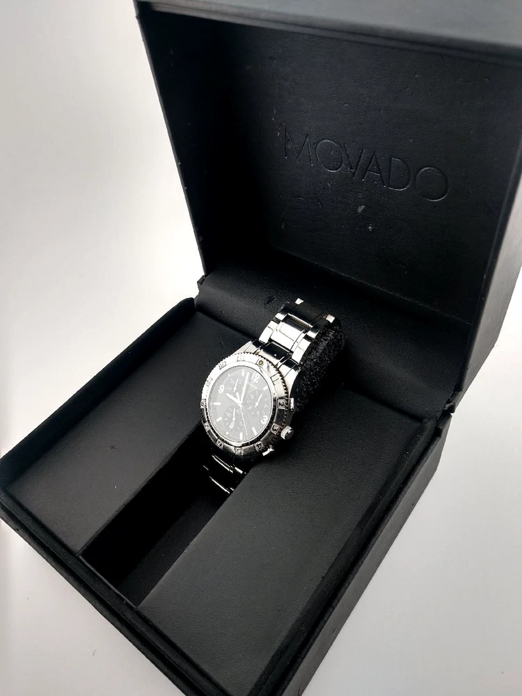 The Movado Chronograph arrived precisely as described, with the authenticity card, original packaging, and detailed pricing. The entire transaction and shipping process was smooth and effortless—truly a superior experience. I am eager to continue working with this seller, who is a GEM in every sense. Thanks, Grandpa Don