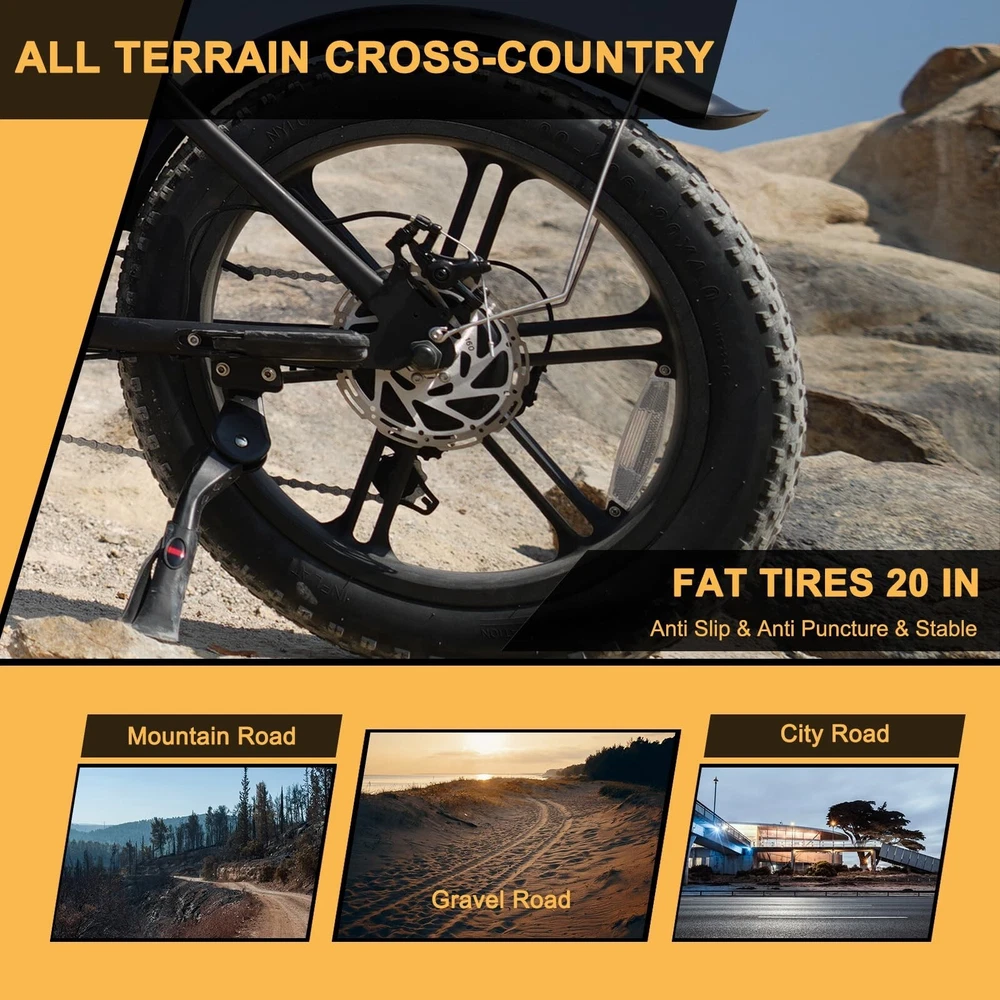 Shop Home Page Fat Tire Ebike Commuting Ebike About us Contact us Shop Category Store Home Hot Item Movcan 26" Fat Tire Electric Bike 35mph 2500W 48V 20.8Ah Mountain Ebike Adults USD 1249.00 Movcan 20" Fat Tire Electric Bike 37.5mph 3000W 48V 40Ah Mountain Ebike Adults USD 1299.00 MOVCAN 26” Electric Bike 1000W 28MPH 48V 13Ah Mountain Commuting Ebike for Adult USD 689.00 Movcan 20" Fat Tire Electric Bike 1500W 32mph 48V 31.2Ah Mountain Ebike Adults USD 1149.00 Movcan Peak 2000W 35mph 48V 25Ah 20" Fat Tire Electric Mountain Bike for Adults USD 999.00 Picture New List Item Movcan 20" Fat Tire Electric Bike 1500W 32mph 48V 31.2Ah Mountain Ebike Adults USD 909.00 Movcan Mountain Ebike Adults 20" Fat Tire Electric Bike 33mph 1500W 48V 18.2Ah USD 809.00 Movcan 20" Fat Tire Electric Bike 1000W 28mph 48V 15.6Ah Mountain Ebike Adults USD 699.00 Movcan Q20 Folding Electric Bike 52V 15.6Ah 20” Fat 1500W Hydraulic Brake 30 MPH USD 789.00 Movcan Mountain Ebike Adults 20" Fat Tire Electric Bike 32mph 1500W 48V 31.2Ah USD 1059.00 Movcan 20" Fat Tire Electric Bike 1000W 28mph 48V 15.6Ah Mountain Ebike Adults Basic Information: Brand: Movcan Theme: Electric Bike Age Range (Description): Adult Recommended Use: Off-road Bicycle Type: Mountain Bike Mode Type: V30-1000W-Single Battery-28MPH-Disc Brake Color: Brown Warranty Type: Extended Maximum Weight Recommendation: 330 Pounds Assembly Required: Yes Bicycle Gear Shifter Type: Trigger Number of Handles: 2 Skill Level: Intermediate Size: Length 66'', Handlebar Height: 47'', Seat Height: 32'' Item Weight 100.3lb Warranty Description:1 Year Warranty for the Most Parts and 6 Months for Battery, Brake and Tire Technical Details: Seat Material Type: Leather Gear Shift?4 speed level (default PAS) Pedal Assist: 7 Speed (Work with PAS) Speed: Up to 28MPH Range: Up to 37 Miles per charge(Pure electric), 70 Miles per charge(PAS mode) Motor: 1000W Battery?48V 15.6AH Removable Battery Charging Time: 6-7 Hours, Matched with 54.6V 2A Charger Tires: 20"x4" All-Terrain Fat Tire Frame Material: Carbon Steel Wheel Material Aluminum Suspension Type: Dual Special Feature: 1000W (peak 1500W) Motor, Full Suspension, 28MPH, Headlight, Dual Disc Brake Brake: Double Disc Brake Package Content: 1 x Electric Bicycle 1 x Removable Lithium-Ion Battery 1 x Charger 1 x Kickstand 1 x Pump 1 x Lock 1 x Tool Kit 1 x Instruction Note:This products have been certified under UL2849 safety standards. 【High-Performance 1000W Motor for Thrilling Rides】 The Movcan electric motorcycle for adults delivers unmatched power with its 1000W (peak 1500W) motor, reaching 28 MPH top speed and conquering 30° slopes effortlessly. Experience smooth gear shifts with the professional 7-speed drivetrain, perfect for tackling mountains, trails, and rugged terrain. This electric bike offers an adrenaline-packed riding adventure you won't forget! 【UL-Certified Removable Battery for Extended Adventures】 The MOVCAN ebike's UL-certified 48V 15.6Ah removable battery delivers exceptional range - 37 miles in full electric mode or 70 miles with pedal assist. Perfect for both off-road ebike adventures and daily commutes, this e dirt bike features a convenient removable battery that charges in just 6-7 hours at home or office. Experience reliable power and extended riding freedom across city streets or rugged trails. 【All-Terrain Dominance with Fat Tires & Suspension】 The MOVCAN fat tire ebike tackles any landscape with 20×4" puncture-resistant tires and a 5-level suspension system (dual front fork + rear shock). This MOVCAN moped ebike delivers triple-layer comfort: tires absorb bumps, front suspension smooths rough terrain, and rear damping eliminates vibrations. Conquer sand, snow, or rocky trails with exceptional stability and traction, enjoying effortless control on every adventure. 【All-Weather Dual Disc Brakes for Reliable Stopping】 The MOVCAN fat tire electric bike features high-performance dual disc brakes delivering instant stopping power in any condition. Designed for ebike for adults, this system provides faster response than standard brakes with superior heat dissipation for downhill riding, plus reliable rain/snow performance. Its durable, low-maintenance design ensures consistent braking power for confident control on city streets or mountain trails. 【Smart Safety & Digital Control System】 The MOVCAN ebike motorcycle delivers superior night visibility with its high-brightness lighting and reflective design. Perfect for e bikes for adults electric, it features a smart digital display showing real-time mileage, battery level, and 4 riding modes. The companion app tracks rides while the integrated safety system ensures protection day or night, offering enhanced control for every journey. 【Freedom to Ride Anywhere - City or Nature】 The MOVCAN e bike gives you the ultimate riding freedom, letting you skip traffic jams and crowded public transport while saving time and money on your daily commute. As the perfect electric bike for adults, it transforms your weekends with effortless escapes into nature - ride beyond city limits to discover scenic trails and peaceful landscapes. Enjoy the perfect balance of urban convenience and outdoor adventure with this versatile electric bike. 【90% Pre-Assembled & 1-Year Warranty】 Your MOVCAN motorcycle ebike arrives 90% pre-assembled for quick setup - just follow our easy instructions and assembly video. This premium fat tire ebike includes full 1-year warranty protection with phone/email support and 24-hour response guarantee. We recommend retaining the original packaging for best warranty service. Rest assured with complete after-sales coverage and expert support whenever needed. Payment Shipping Returns Contact Us Warranty [Variety of payment methods are accepted, such as credit, debit, gift cards, Apply pay, Google Pay, Paypal and Paypal Credit.] Our warehouses are located in the West and East of the U.S. We will match the appropriate warehouse