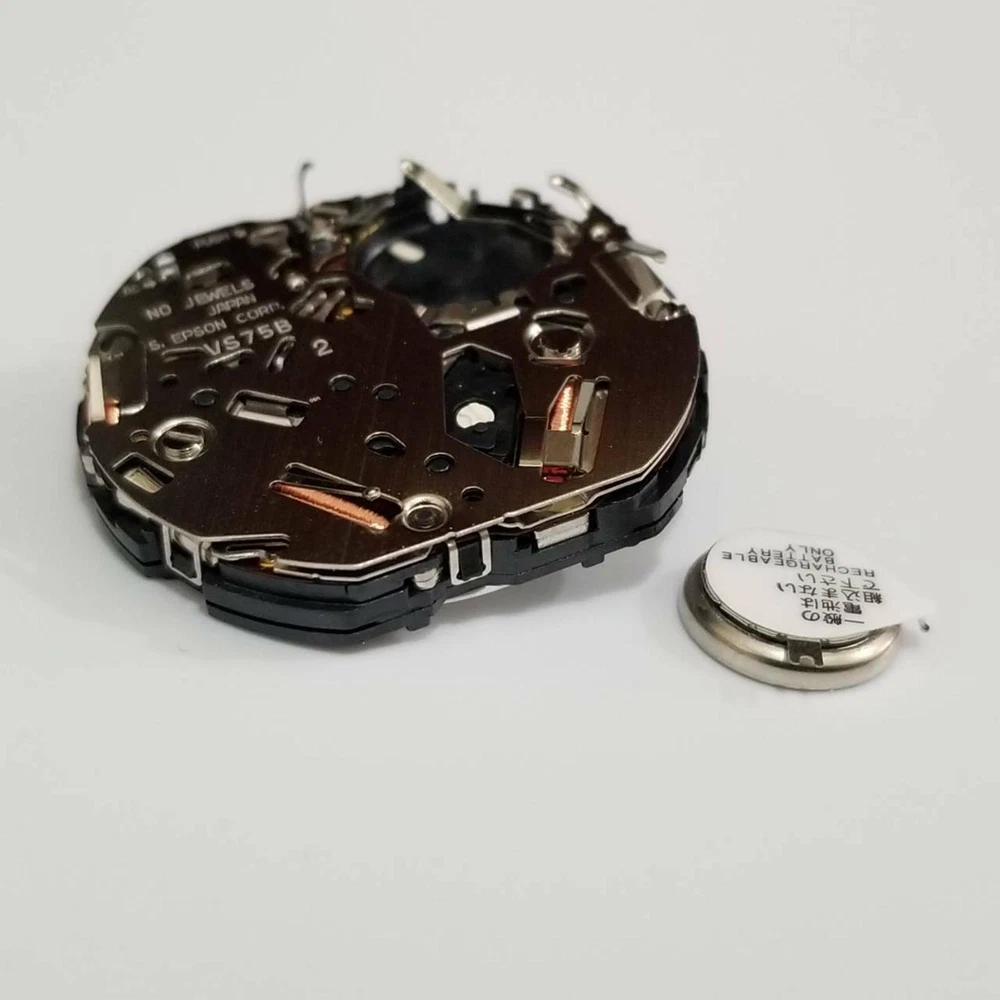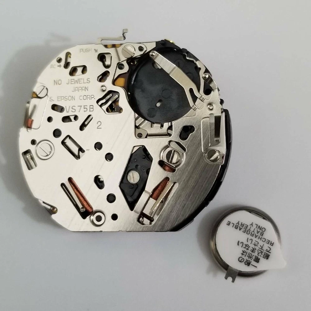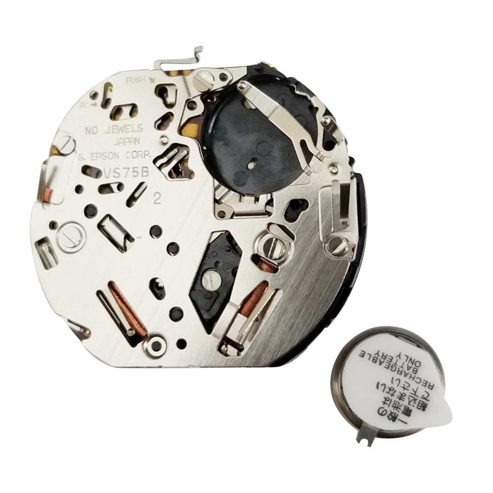 Product Description Features: For Hattori / S. Epson VS Series Japanese Movement, VS75 12 Ligne, 3 Hands, 3 eyes (3,6,9), Date 4:30, Solar Movement Date at 4:30 Angled to Center. 3 Eye Chrono: 24 Hours at 3, 60 Minutes at 6, Small Seconds at 9. Center Seconds is 1/5th Second Chrono. Solar Power - 6 Months Charge Manufacturer: S. Epson Size (Ligne): 12 Round Thickness: 4.40mm/0.17in Hands: 65/110/21 Width: 27.60 x 24.00mm/1.08x0.94in Watch Battery: Solar (included) Jewels: None Watch Stem: 351587, Tap 10 Package include: 1* Quartz Watch Movement Shipping 1. Items sent from US warehouse. 2.Receiving time = Processing time + Shipping time . 3. Processing Time: Around 1-2 business Days . 4. Shipping Time: 3-5 business day. it may have a little delay during some holiday (such as Christmas), any problem, please feel free to contact. Returns 1. 30 days warranty from the purchased date. Please contact us via email before returning the defective item. 2. Our warranty does not extended to any product that are physically damaged or that are not under normal operating conditions as result of misuse or improper installation on the buyer/user's part. 3. Return items should include the original packaging and all accessories. buyers MUST contact us for the returning address. 4. In all cases, buyers pay shipping fees at their own cost to return products for exchange or refund. We will be responsible for the postage of replacements. Refund will be made upon receipt of the returned item. Contact Us If you have any question, please e-mail us immediately, we will reply you as quickly as possible. We care about our valued customers, and will always try to help you. About Us We are committed to providing you with the best quality products and services. We hope your shopping experience is easy and enjoyable. Payment We accept all verified payment from eBay. You may also like 13Pack Metal 0.6-2.0mm 90mm Long Screwdrivers Repair Tools For Watchmakers Watch 15.04 USD 1:72 Scale US SBD-3 Dive Bomber Fighter Alloy Aircraft Model Military Plane NEW 45.57 USD 3.89 USD Foot Pedal-Pressure Control-Valve 3 Way 2 Position 1/4" Air Pneumatic Switch 25.43 USD Lower Duct Hose for Shark Rocket True Pet Slim Vacuum HV300 HV322 320 380 380UK 9.95 USD Generic Part Watch Balance Wheel Hairspring For ETA 2824-2 2834 2836 Movement F 6.35 USD 3.89 USD Durable Abrasive Mounted Stone For Rotary Tools Grinding Stone Wheel Head Dremel 9.95 USD powered by