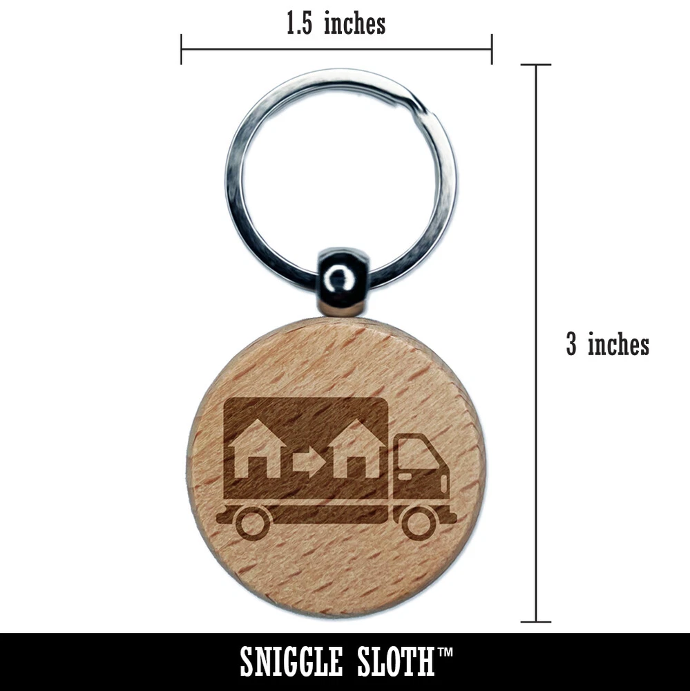 Moving Truck Vehicle Icon Engraved Wood Round Keychain Tag Charm