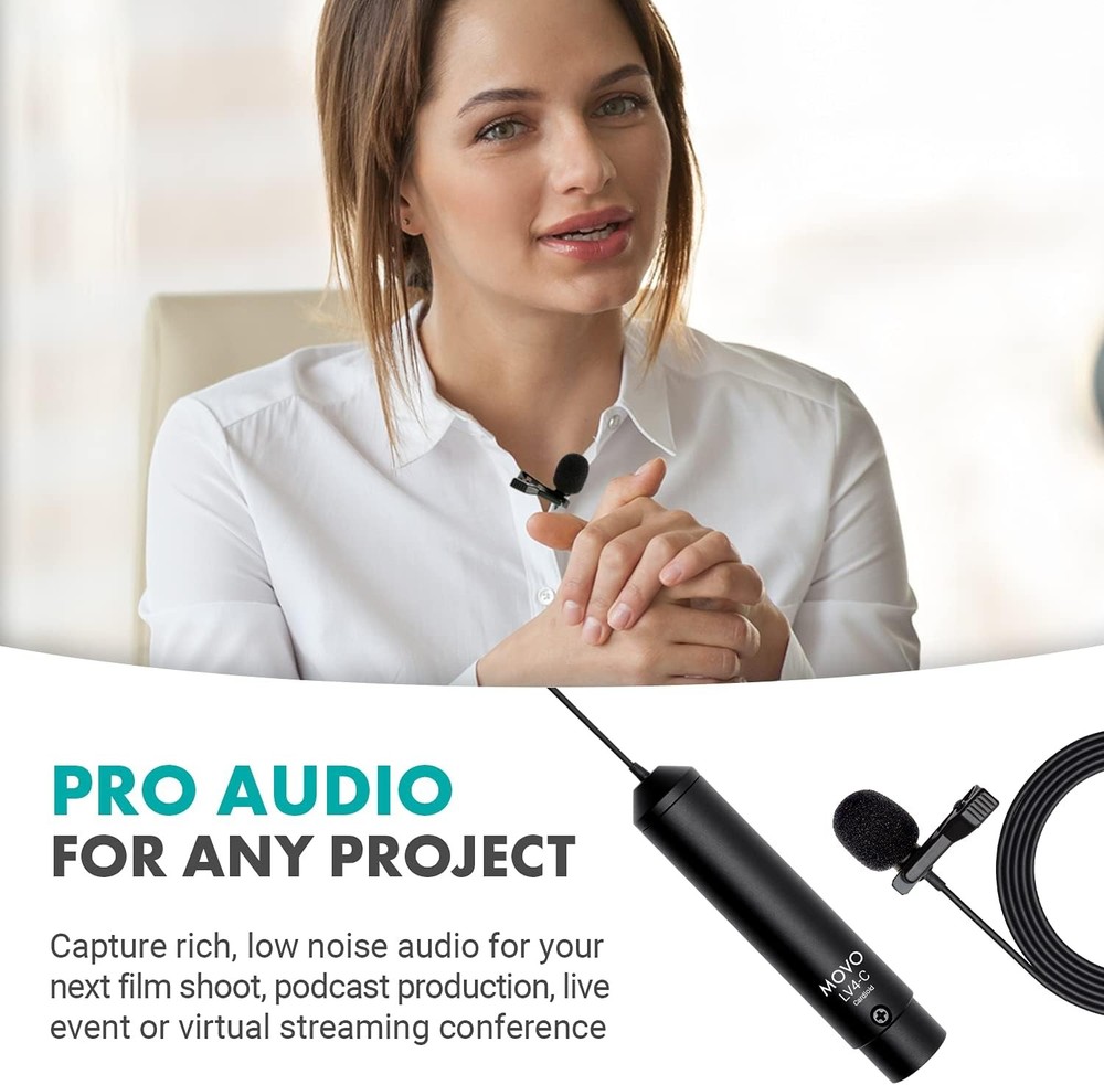 Movo LV4-C Cardioid XLR Lavalier Microphone Phantom Power Cardioid, Black Product Details Audio Sensitivity: 38 dB Impedance: 200 Ohm Microphone Form Factor: Lavalier Power Source: Corded Electric Material: Metal Signal-to-Noise Ratio: 78 dB Number of Channels: 1 Frequency Response: 18 KHz Noise Level: 78 dB Manufacturer: Movo Item Weight: 3.52 ounces Package Dimensions: 5.87 x 4.25 x 1.18 inches Country of Origin: China Item model number: LV4-C Is Discontinued By Manufacturer: No Color Name: Black Material Type: Metal Size: Cardioid Recommended Uses For Product: Voice Recording, Video Recording, Speech, Video Conference Brand: Movo Model Name: LV4-C Connectivity Technology: XLR Connector Type: XLR Special Feature: Clip Compatible Devices: Audio recorders, Sound boards, Wireless receivers Color: Black Polar Pattern: Unidirectional CARDIOID LAPEL MICROPHONE: 3 pin XLR full sized plug works off 48V phantom power - No batteries required. 6ft cord length GREAT SOUND CAPTURE: Yields a generous pickup area while maintaining adequate feedback and noise blocking. Perfect on an interview or for presentations MANY USES: Record depositions, podcast interviews, music, tutorial voice overs, filming, live streaming, or a twitch broadcast. Just need an XLR input CLEAR AUDIO: Wide frequency response and high SPL rating results in crisp and clear sound, without losing the warm, bassy notes of a person's voice