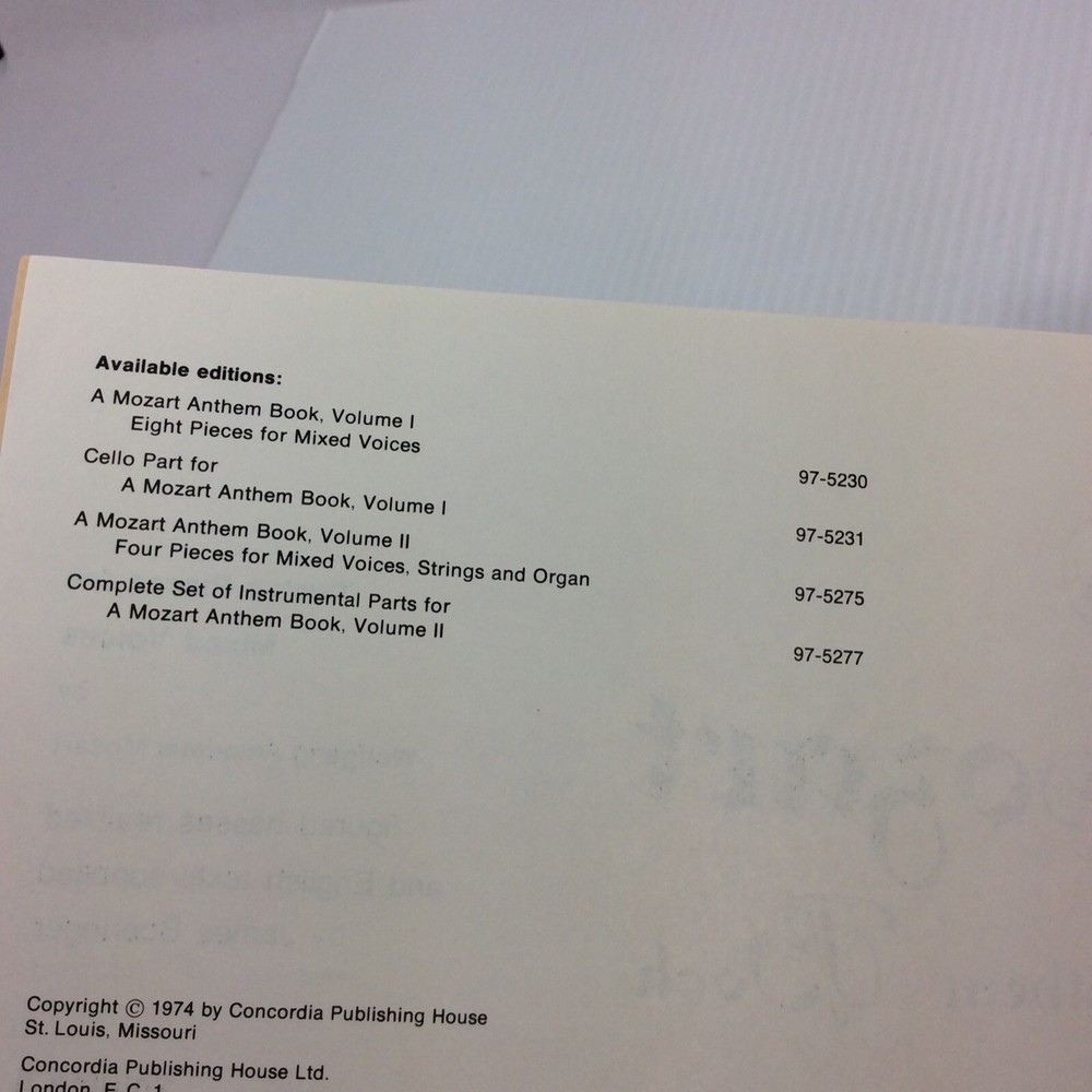 Mozart Anthem Book Vol II SATB Choral Music with Strings and Organ 1974 Edition