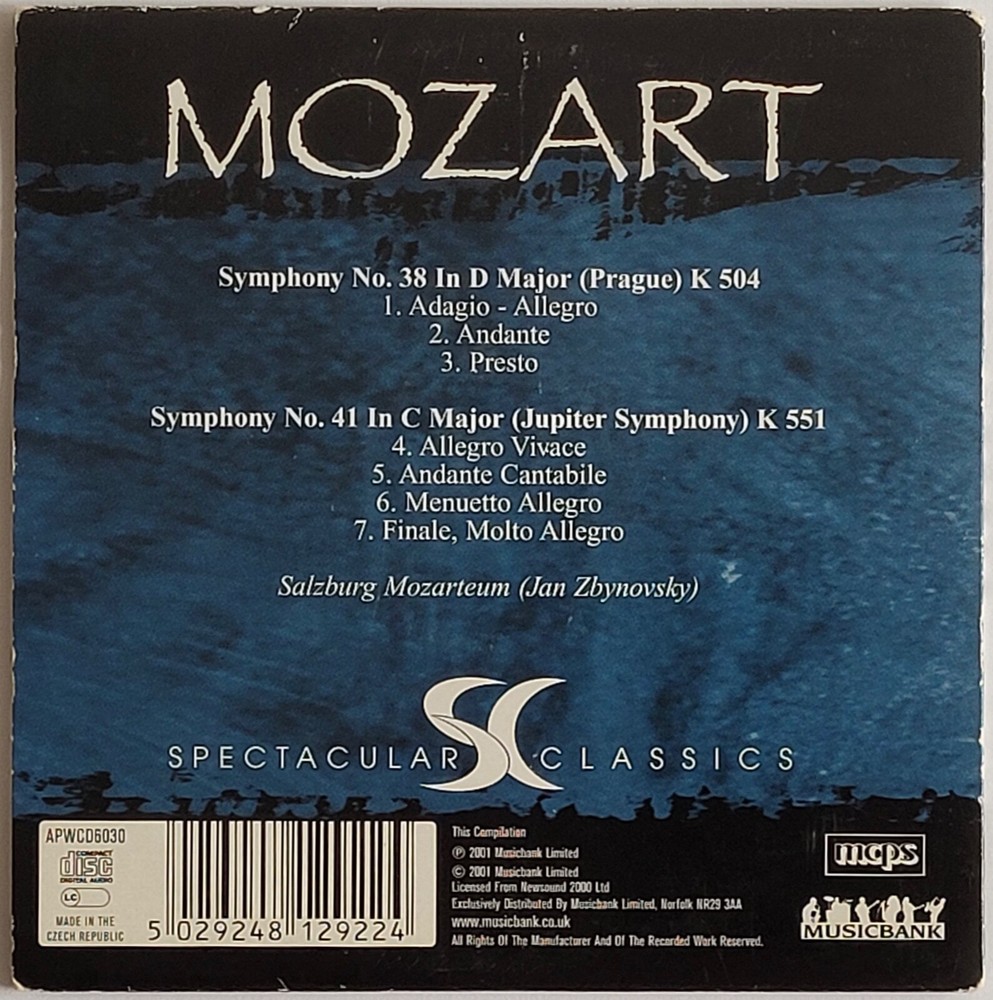 Mozart - Symphony No. 38 in D Major (Prague) and Symphony No. 41 in C Major (Jupiter Symphony). See photo for full details. Musicbank CD in card slipcase. Good condition. Postage will be combined for multiple purchases.