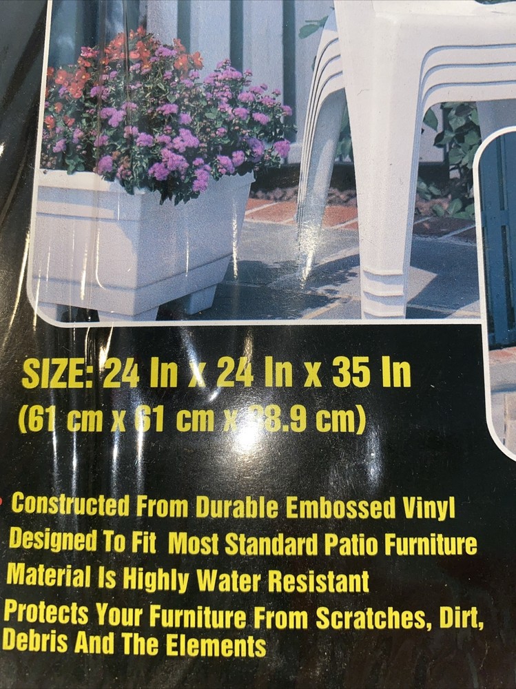 Protect your outdoor chairs with this high-quality cover from Mr. Bar-B-Q. Designed to fit perfectly over your stackable chairs, this vinyl cover is water resistant and will keep your chairs looking great for years to come. The green color is stylish and will blend seamlessly with your outdoor decor. Made for standard-sized chairs, this cover is suitable for use with Mr. Bar-B-Q's own brand of chairs, and will keep them protected from rain, snow, and sun damage. Whether you're storing your chairs during the off-season, or simply want to keep them clean and dry between uses, this durable cover is the perfect solution. Shop today and enjoy the peace of mind that comes with knowing your outdoor furniture is well-protected from the elements.