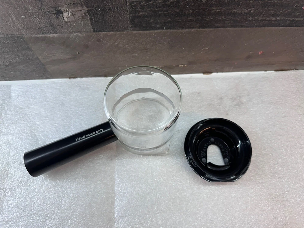 Mr. Coffee Steam Espresso Maker BVMC-ECM27 Replacement Carafe w/ Lid is in very good condition, with light scuffs on the black plastic lid. It has been hand washed and overall looks great. Carafe has been well protected to prevent damage during shipment. This will ship via USPS Ground Advantage to most destinations.