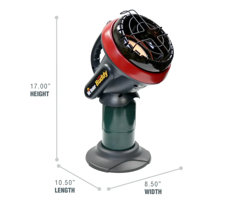 About this item Radiant propane heater in a portable, indoor safe design 3,800 BTUs heats up to 95 square feet by Mr. Heater Tip over safety shut off switch and low oxygen safety shut off sensor Runs 5.6 hours on standard 1 lb propane cylinder
