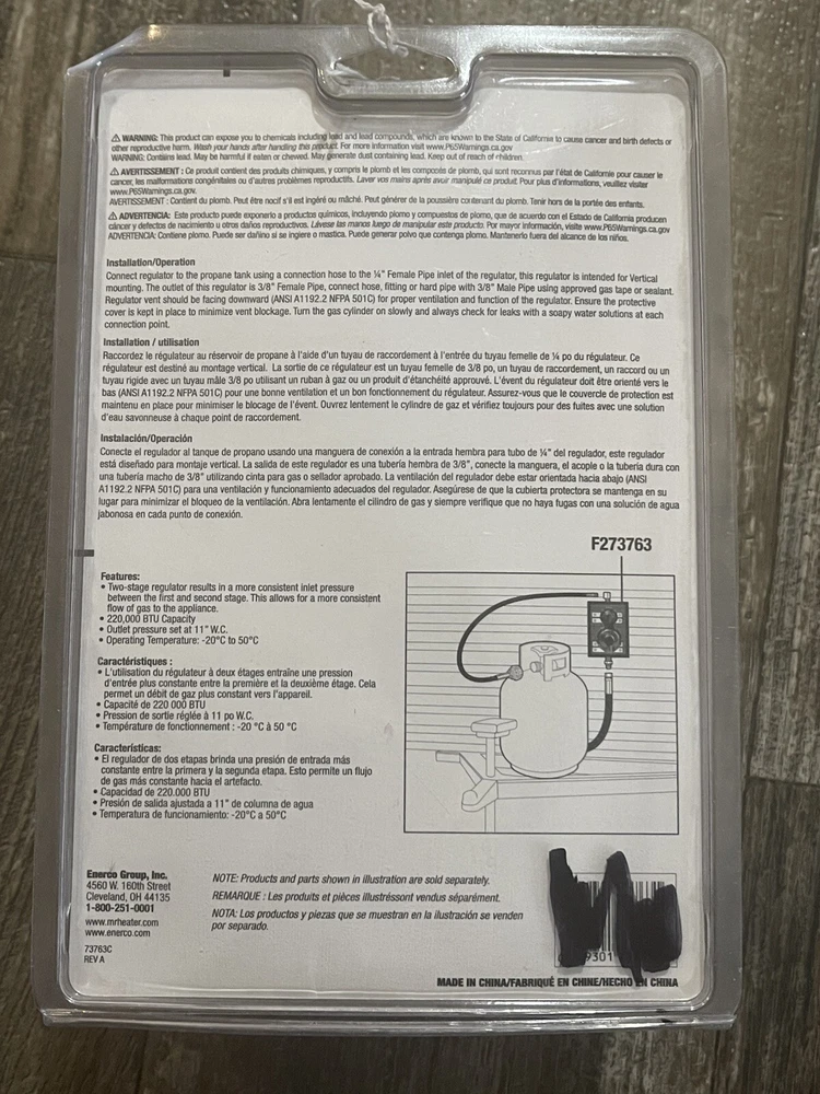 This Mr. Heater F273863 Brass Propane Two Stage Regulator is a high-quality product that is perfect for your heating needs. With a maximum flow of 160000 BTU, this regulator is ideal for heating systems that require a lot of power. It has three heat settings that you can adjust to your desired level of warmth. The regulator is compatible with universal smart home systems and has an automatic shut-off feature that ensures your safety. Its heating element is made of stainless steel and has a coil format that is easy to maintain. This product is perfect for small areas, with a coverage of 100 square feet or less. It is an A+++ to D range EC product that is efficient and reliable.