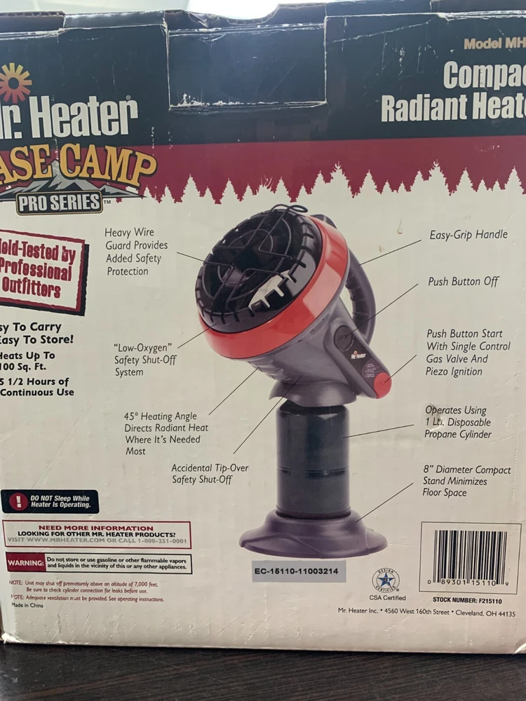 This Mr. Heater MH4B Portable Heater in red is the perfect addition to any home or workspace. With a tank capacity of 1 gal or less, this heater is ideal for small spaces and can cover up to 100 sq ft or less. It features a coil heating element made of steel and a BTU heating rating of 3000-3999 BTU. The heater has a rotary knob, switch, push button, and analog/mechanical control style, with auto shut-off and timer features. It runs on electric, gas, and propane power sources and has an annual fuel utilization efficiency (AFUE) of 100%. The heater is made of ceramic and steel materials and has a standard operating sound rating. This portable heater is cordless and can be mounted on the baseboard, floor, desk/tabletop, or cabinet.