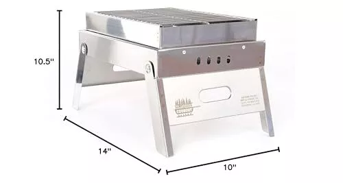 Enjoy easy grilling in the outdoors with a Mr. Outdoors Cookout Stainless Steel BBQ Grill. Great for the campsite and portable for travel! Light compact grill unfolds to 10.5” height with 10” x 14” grill surface. Perfect for 8lb bag of . Packs and stores easily. Fabric carry bag included. Stainless steel, portable grill 10" x 14" grill surface Holds an 8lb. Bag of Light pack, compact breakdown - great for quick trips Fabric carry-bag included