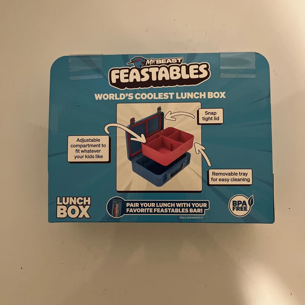 MrBeast Feastables World's Coolest Collectible Lunch Box, BPA-Free, Blue/Pink