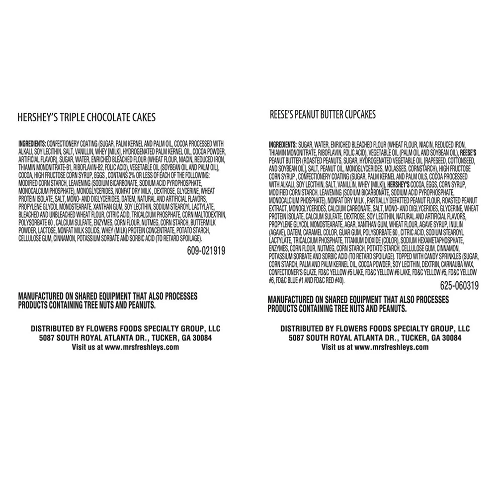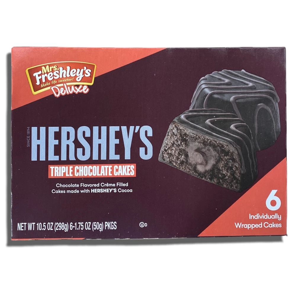 << The item is a Size 12 Count (Pack of 1) >> Take your snack game to a whole new level with Mrs. Freshley's Hershey's Triple Chocolate Cakes and Reese's Peanut Butter Cupcakes! Hershey's Triple Chocolate Cakes are made with Hershey's cocoa Reese's Peanut Butter Flavored Cupcakes are made with Reese's peanut butter Soft, moist crème-filled cakes Labeled for resale 12 Count (Pack of 1) Take your snack game to a whole new level with Mrs. Freshley's Hershey's Triple Chocolate Cakes and Reese's Peanut Butter Cupcakes! Hershey's Triple Chocolate Cakes are made with Hershey's cocoa Reese's Peanut Butter Flavored Cupcakes are made with Reese's peanut butter Soft, moist crème-filled cakes Labeled for resale Hershey's Triple Chocolate Cakes, Reese's Peanut Butter Flavored Cupcakes||Mrs. Freshley's Deluxe Hershey's Triple Chocolate Cakes and Reese's Peanut Butter Cupcakes||12 Count||CAKE