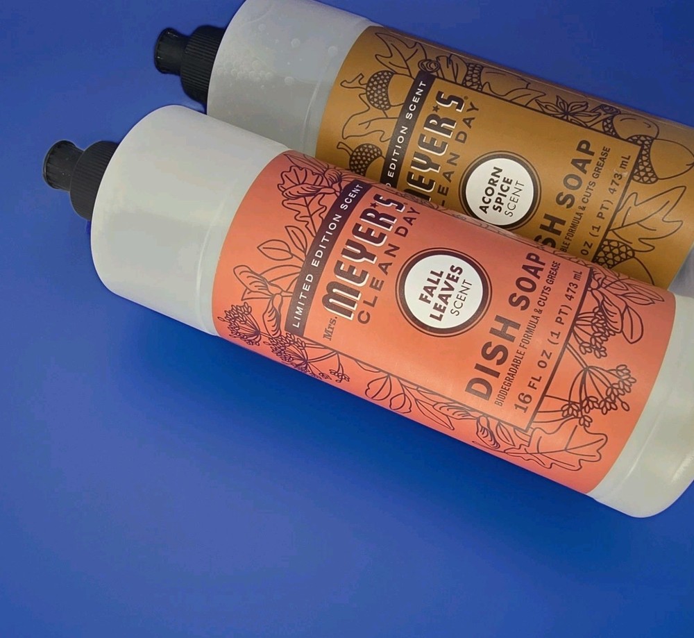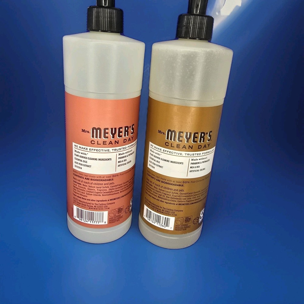 This pair of Mrs. Meyer's Clean Day Limited Edition Fall Scent Dish Soaps is perfect for bringing the cozy aromas of autumn into your kitchen. These biodegradable formulas are tough on grease while being gentle on the environment. Product Overview Brand: Mrs. Meyer's Clean Day Product Type: Liquid Dish Soap Quantity: 2 Bottles (1 of each scent) Size: 16 fl oz (473 mL) per bottle Scents Included: Fall Leaves: A crisp, refreshing scent reminiscent of a cool autumn day. Acorn Spice: A warm, nutty, and spicy scent that feels like a cozy home. Key Features •Limited Edition: Seasonal scents that are only available for a short time. •Plant-Derived Ingredients: Made with essential oils, aloe vera extract, and glycerin. •Cruelty-Free & Biodegradable: Formulas are never tested on animals and are safe for septic systems. •Effective Cleaning: Specifically formulated to cut through grease and stuck-on food. Free From: No parabens, phthalates, MEA, DEA, or artificial colors. Condition & Shipping •Condition: New, unused. (Items are shown in original protective plastic shipping sleeves in photos). •Packaging: Securely packaged to prevent leaks during transit. UPCs: 808124117778 (Fall Leaves) & 808124113602 (Acorn Spice)