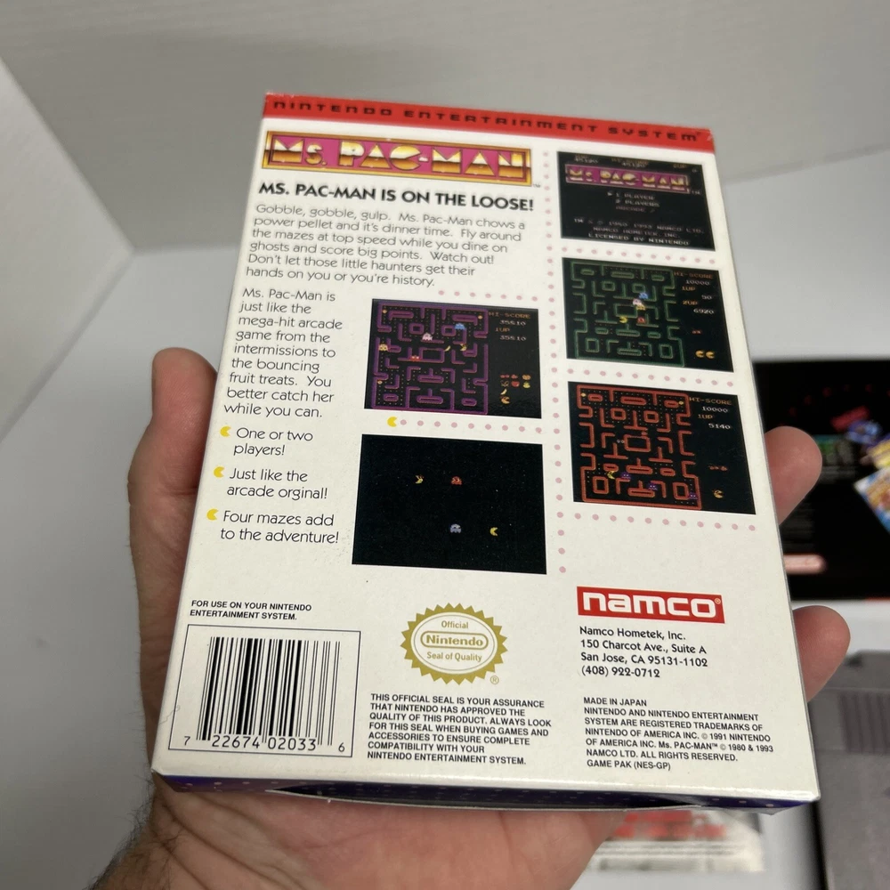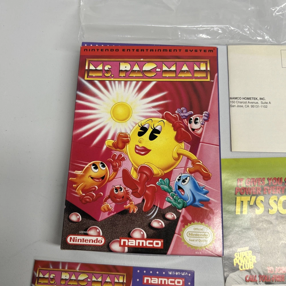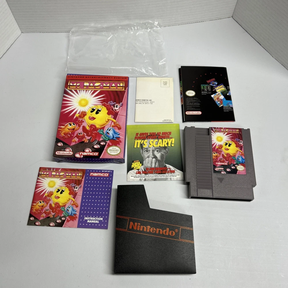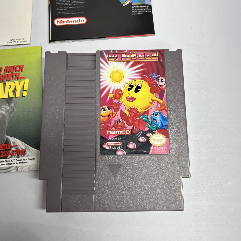 Ms. Pac-Man Gray Cart NAMCO Nintendo NES CIB Complete in Box Very Good Condition