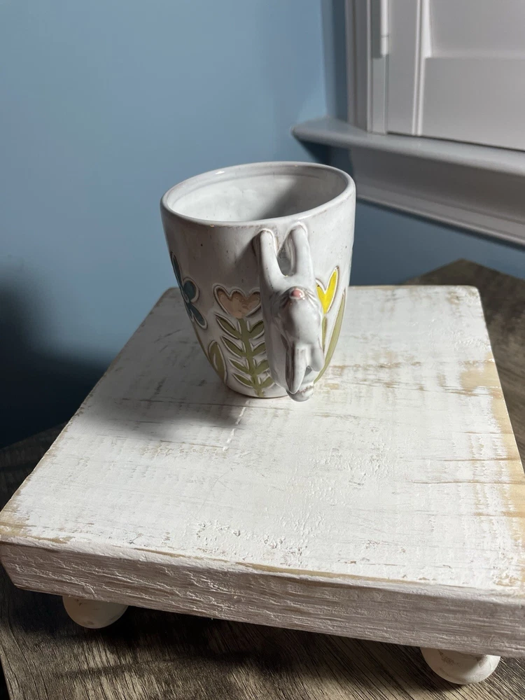 Mud Pie 4” ceramic Bunny handles with flowers coffee mug. Adorable for Spring.