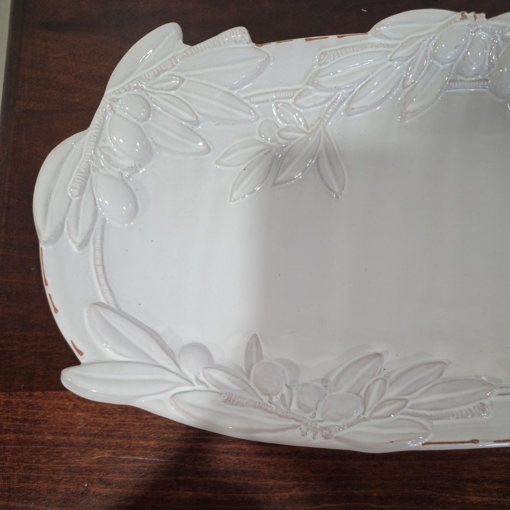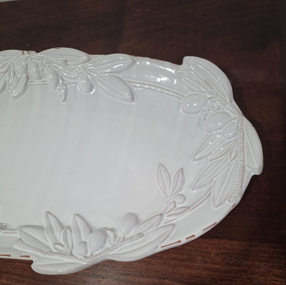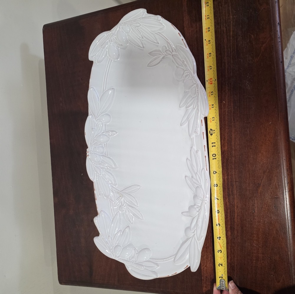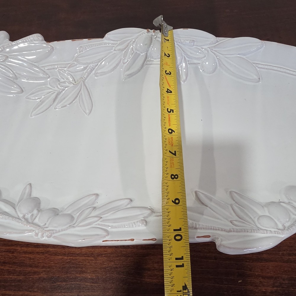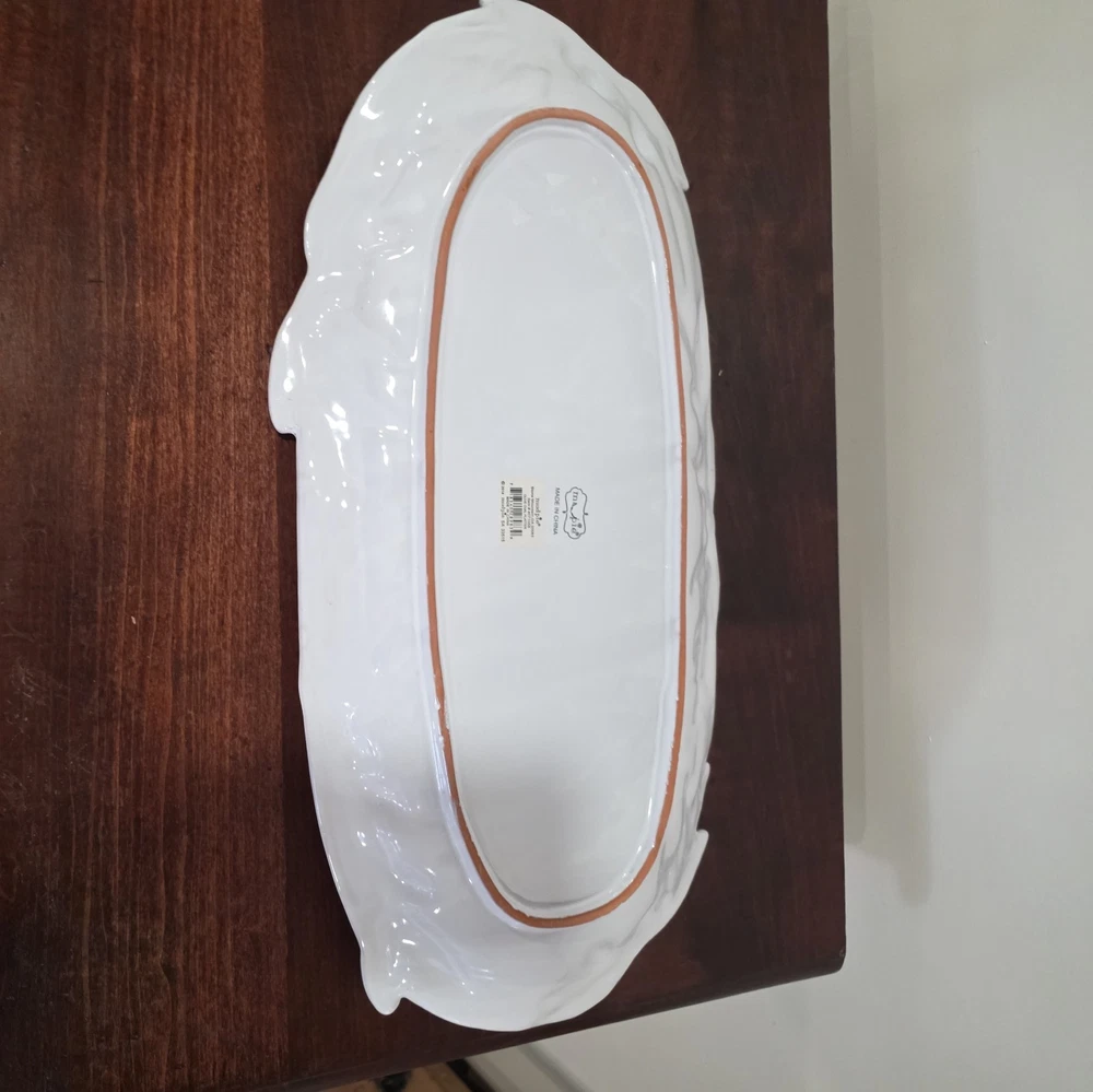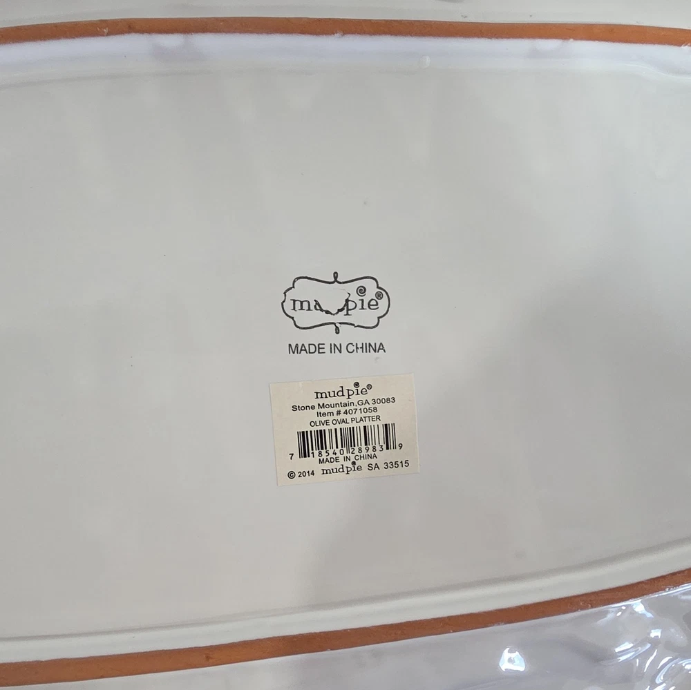 Material: Ceramic Finish: Glossy Type: serving platter Country of Origin: China Personalize: No Size: Large Color: White Brand: Mud Pie Shape: Oval Occasion: All Occasions