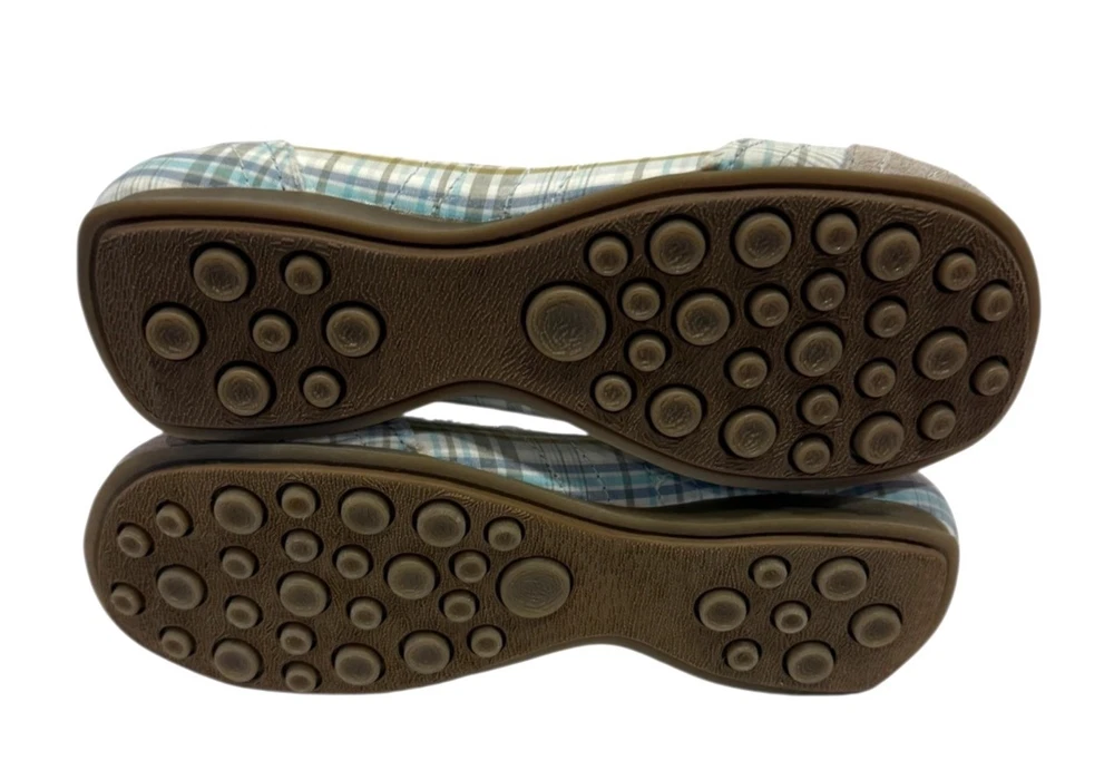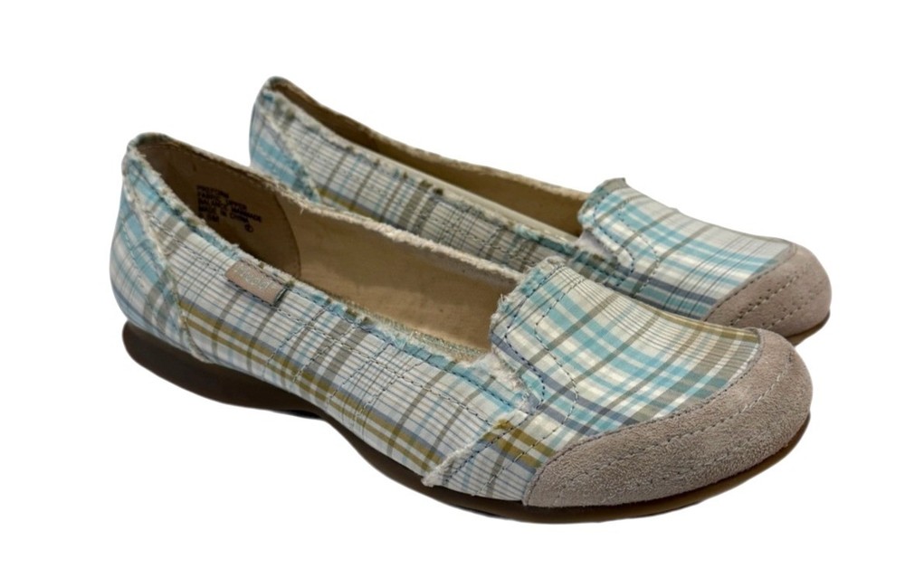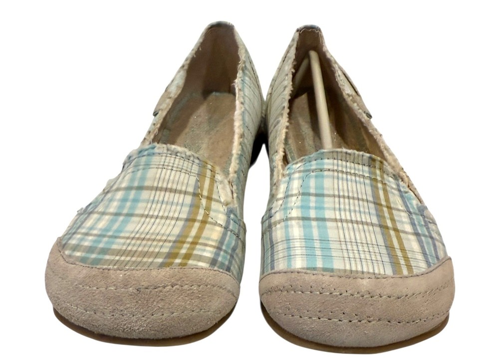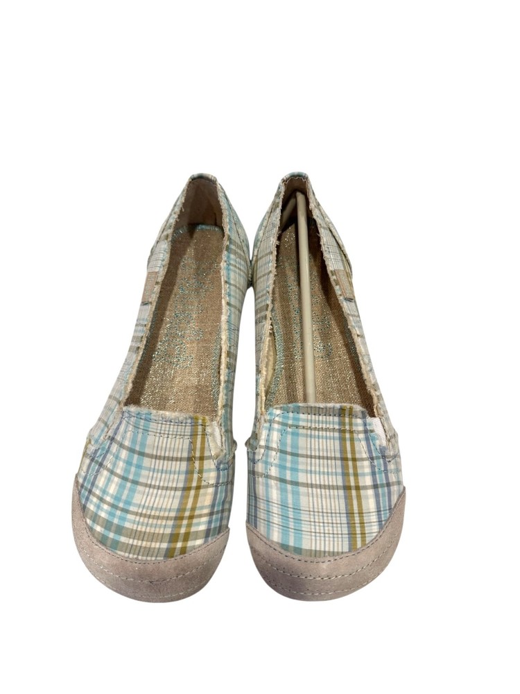 Elevate your style with these Mudd Women's Preform Plaid Flats, offering a natural look in a comfortable size 9.5. Perfect for casual outings or work attire. • Rounded Suede Toe • Raw Edge • Textured Sole - Size - 10M - Color - Green Plaid - New without box. NO flaws - Smoke free home