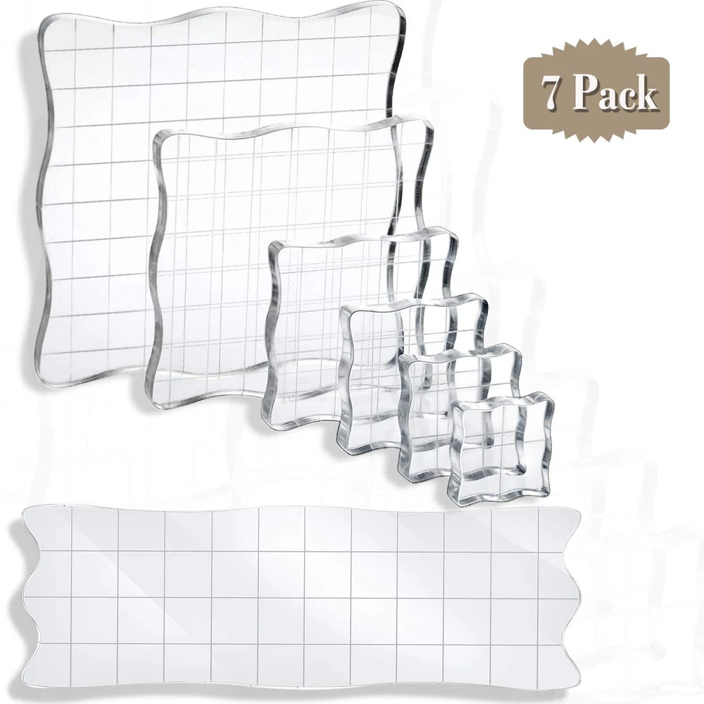 Mudder 7 Pieces Acrylic Stamp Blocks Set Clear Stamping Blocks Tools with Gri...