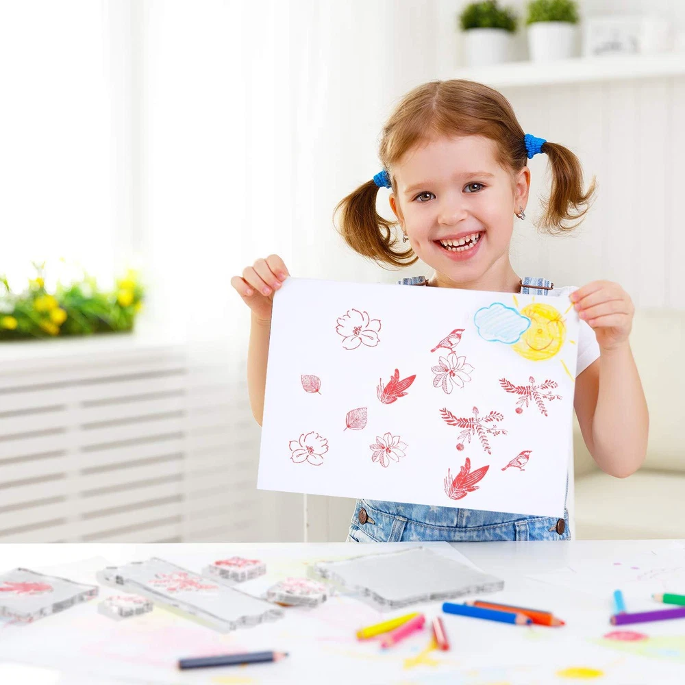 7 Pieces stamp blocks acrylic clear stamping blocks tools with grid and grip, decorative stamp blocks for scrapbooking crafts making, diy crafts ornaments Features: Stamp blocks are made of acrylic that is strong, solid and sturdy, not easy to break, safe and comfortable to use. The acrylic stamp block is suitable for stamping projects such as stamping on cards, notebooks, journals, invitations, clipboards. Acrylic blocks have a layer of protective film on the surface, so you need to tear it off before you use it. Multi-function acrylic stamp blocks with grid: Clear acrylic blocks are suitable for card making, invitations, album, gift tags and DIY any other amazing craft projects. The stamps are reusable and self stamp in the acrylic blocks, so you can use them to DIY scrapbook conveniently. You can also present the stamp blocks set as a gift to craft lovers. Usage method: 1. Please remove the protective film from the surface first. 2. Simply peel off the stamp from transparent sheet. 3. Apply the stamp to the block. 4. Apply ink to the stamp. 5. Place the image onto desired surface and press down firmly. Specifications: Size: 5.9 x 1.97 inches/ 15x 5 cm, 3.9 inches/ 10 cm, 2.95 inches/ 7.5 cm, 2 inches/ 5 cm, 1.2 inches/ 3.1 cm, 1.5 inches/ 3.8 cm, 1 inches/ 2.5 cm Thickness: 0.31 inches/ 0.8 cm Grid size: 1 x 1 cm Material: acrylic Package includes: 7 x Acrylic blocks warm notice: Before purchase, please check the details of the product and whether the thickness of the size is applicable There is a protective film on one side of the product. Please tear it off before use If you are in trouble with using, please contact customer service. We will give you a satisfactory answer Package content: you will get 7 pieces of acrylic stamp blocks in different sizes that are 2.5 x 2.5 cm, 3.1 x 3.1 cm, 3.8 x 3.8 cm, 5 x 5 cm, 7.5 x 7.5 cm, 10 x 10 cm, 15 x 5 cm; Each one is 0.31 inches/ 0.8 cm in thickness meeting your needs for applying different stamps Beautiful Lace Design: one side of the acrylic blocks for stamping is lace design, the edges are round, smooth and comfortable, which is cute and interesting, and the other side is clear and visible grid design, which can help locate the stamp image Reliable materials: the clear blocks are made of transparent acrylic material that is durable, not easy to break, easy to clean, and can be applied for a long time Comfortable and Safe: the curving edge of the lace of the acrylic block is round, smooth, comfortable and close to the finger, which is suitable for your daily use; You don't have to worry about scratching your hand; Please remove the protective film from the surface first; Simply peel off the stamp from transparent sheet; Apply the stamp to the block; Apply ink to the stamp; Place the image onto desired surface and press down firmly Wide applications: the clear acrylic blocks are suitable for stamping craft projects such as card making, invitations, diary, album, notebook, journal, gift tags and DIY any other amazing craft projects; The stamps are reusable and self stamp in the acrylic blocks, you can use them to DIY scrapbook conveniently