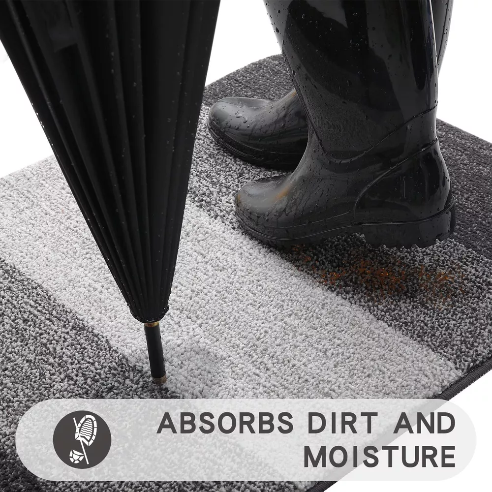 PLEASE NOTE: Since doormats are folded packed, it is normal that items may arrive with creases. Don't worry, it will not affect the use. Please machine wash flat for 2-3 days, patiently wait for wrinkles to recover, or use a hot iron on a wet towel, wrinkles will disappear completely. ABSORBS MOISTURE AND DIRT:Kitinjoy indoor doormats effectively trap water, mud, and dirt. Countless polyester fibers keep indoor areas clean, and dry. Even rain, snow, or muddy weather can protect the floor from spills or stains. STURDY & NON-SLIP: These indoor doormats are made of good quality polyester microfiber with sturdy braided edges for more durability; Non-slip TP Rubber keep them firmly in place and are able to prevent trips and falls. Make sure the floor is clean and dry before placing. LOW PROFILE & VERSATILE: The 0.4 inch thickness makes our doormat suitable for most entrances. Doors can be opened and closed smoothly without fear of tripping. The fashion design and multiple options can be widely used indoor and outdoor, kitchen, front door, entrance, patio, garage, laundry, bathroom, etc. EASY TO CLEAN: Doormats can be cleaned off with a broom or vacuum cleaner, or using a vacuum cleaner. They can also be machine washed separately in cold water with a mild detergent, dried, or dried through low temperature. Do not use bleach or fabric softener.