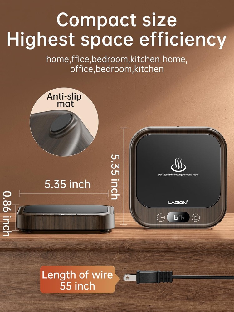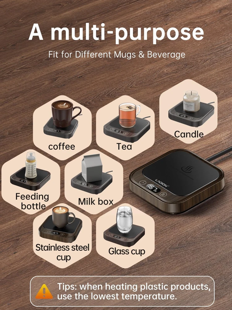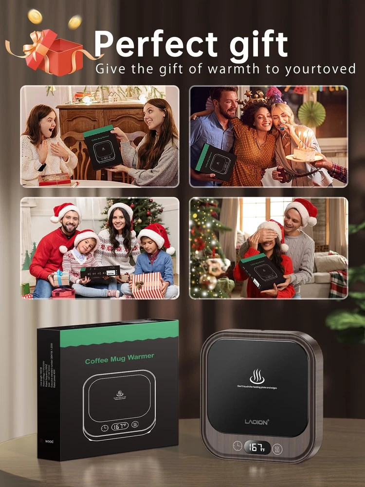 Your Perfect Coffee Companion Tired of your coffee going cold before you can finish it? The Mug Warmer is here to save the day! With four precise temperature settings, you can customize the warmth of your favorite beverage to perfection. Whether you like your coffee piping hot or just slightly warmed, our warmer has you covered. Designed with safety and convenience in mind, the Mug Warmer automatically shuts off after 8 hours, so you can relax knowing your mug and your home are safe. Plus, its compact and sleek design makes it a stylish addition to any desk or kitchen. Versatile and efficient: Works with most mugs and cups, and heats evenly for the perfect temperature every time. Quiet and durable: Enjoy a peaceful workspace or kitchen without any annoying buzzing sounds. The perfect gift: Surprise a coffee lover with a gift that keeps on giving. Say goodbye to cold coffee and hello to cozy mornings. The Mug Warmer is more than just a kitchen gadget; it's a small luxury that makes a big difference. Elevate your coffee or tea experience today! 【Consistent Warmth, Perfect Temperature】Elevate your coffee or tea experience with the Mug Warmer. Our warmer offers 4 precise temperature settings (113°F, 131°F, 149°F, and 167°F) to keep your beverage at the perfect temperature. Enjoy every sip with consistent warmth, no matter how busy your day gets. 【Safety and Convenience, Built-in】Designed with your safety and convenience in mind, the Mug Warmer boasts a 8-hour auto-shutoff feature to prevent accidents and energy waste. Its compact design and long power cord make it ideal for home or office use. Plus, the non-slip base ensures stability, while the sleek design complements any decor. 【Versatile and Efficient】Our mug warmer is with most cup sizes and shapes, including ceramic, glass, and stainless steel. The large heating plate ensures even heat distribution, while the energy-efficient design keeps your energy bills low. 【Small, Mighty, Quiet】This compact coffee warmer is big on performance. It's perfect for any space. The upgraded heating plate is made to last and is easy to clean. The quiet operation won't disturb your peace. Enjoy the perfect temperature for your coffee, tea, or cocoa. 【A Thoughtful Gift That Keeps on Giving】Our Mug Warmer makes an exceptional gift for any occasion. Whether it's a , holiday, or just because, this practical and stylish accessory is sure to be appreciated. Not only does it keep your favorite beverages at the perfect temperature, but it also doubles as a cozy companion for those chilly mornings. With its sleek design and multiple temperature settings, it’s the perfect addition to any desk or kitchen.