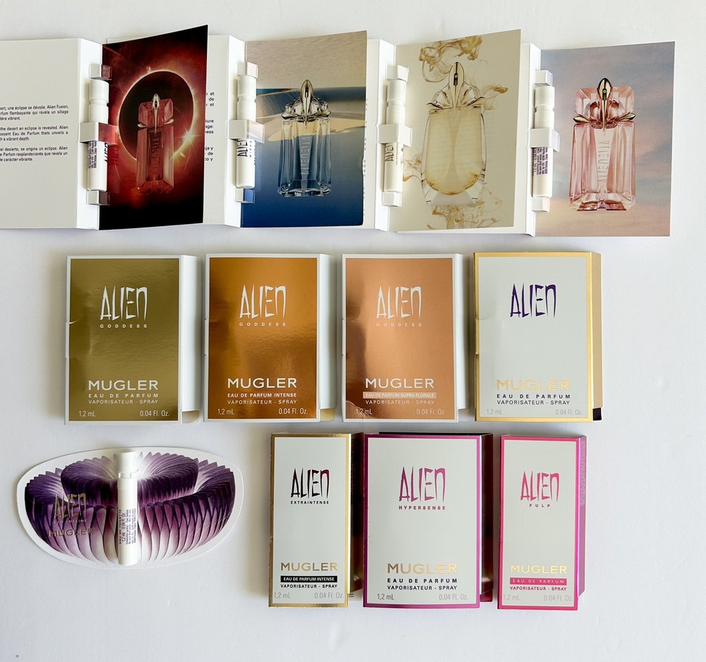 Set Included: - Mugler Alien PULP EDP 1.2ml (New) - Mugler Alien EDP Supra Florale 1.2ml (New) - Mugler Alien Extraintense EDP Intense 1.2ml (New) - Mugler Alien Mirage EDT 1.2ml(New) - Mugler Alien EDP 1.2ml - Mugler Alien Eau Extraordinaire EDT 1.2ml - Mugler Alien Goddess EDP 1.2ml - Mugler Alien Goddess EDP Intense 1.2ml - Mugler Alien Hypersense EDP 1.2ml - Mugler Alien Fusion EDP 1.2ml - Mugler Alien Flora Futura EDT 1.2ml - Mugler Alien Eau Sublime EDT 1.2ml NOTE : Manufacturers do not fully fill up the sample vials!