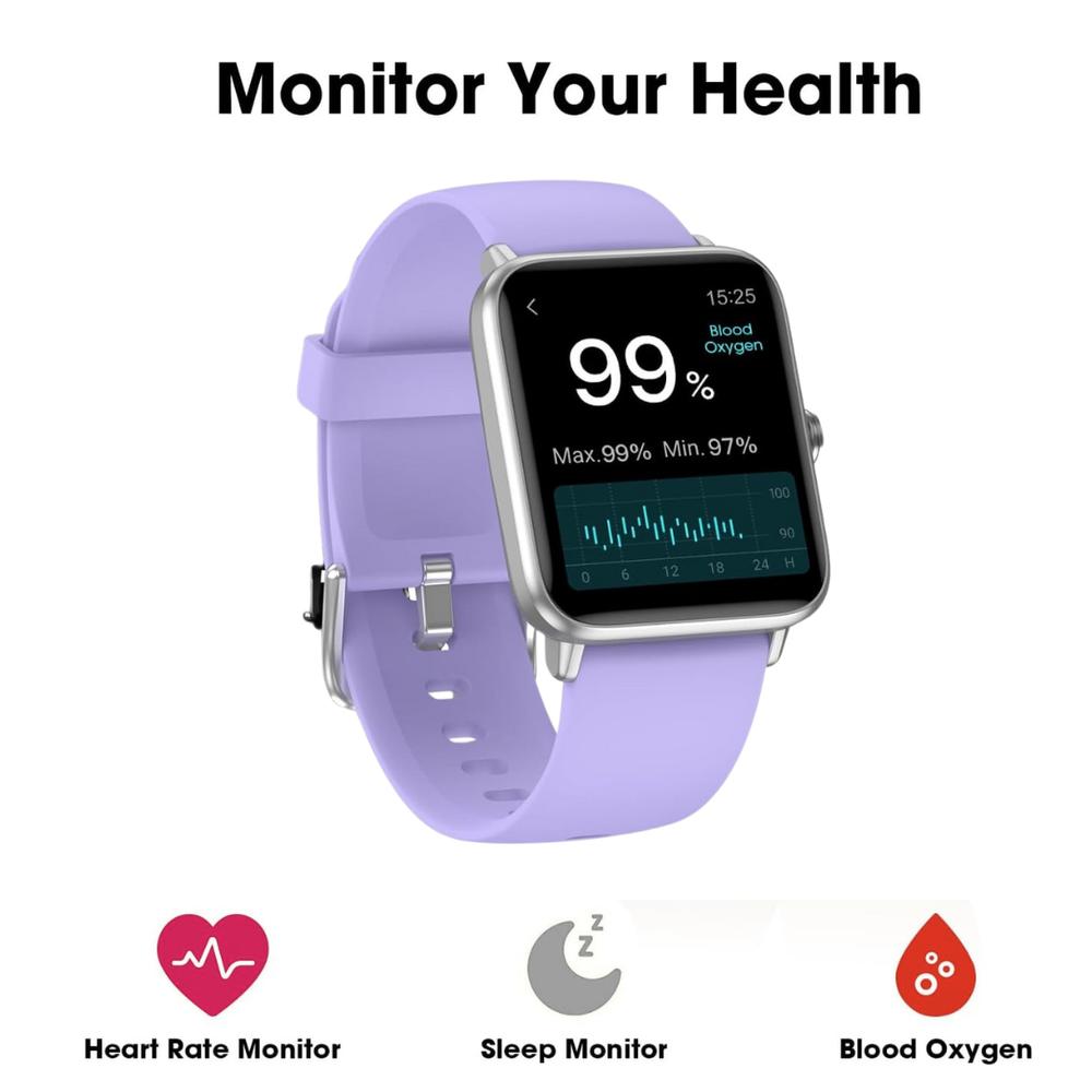 Smart Watch, Fitness Tracker with Heart Rate Monitor, Blood Oxygen, Sleep Tracking, 1.5 Inch Touchscreen Smartwatch for Android iOS Swimming Waterproof Pedometer Step Calories Tracker for Women Men Women's Fitness Smartwatch with Health & Activity Tracking Stay on top of your fitness and daily routine with this stylish smartwatch designed for women. Customize your watch face and enjoy handy tools like a stopwatch, timer, music control, breathing exercises, alarm clock, and more. Health Monitoring : Real-time heart rate tracking, blood oxygen check, and automatic sleep tracking (light, deep, and awake times). Fitness Features : 10 sports modes including yoga, walking, and running. Tracks steps, calories, distance, and connects with phone GPS for outdoor routes. Notifications : Get call and message alerts from SMS, WhatsApp, Facebook, and others (view only). Includes reminders for activity, hydration, appointments, and more. Waterproof & Durable : IP68 waterproof – safe for handwashing, rain, swimming, and diving. Long Battery Life : Charges in 2 hours, lasts up to 7 days (30 days standby). Wide Compatibility : Works with iOS 10.0+ or Android 5.0+ and Bluetooth 4.0+. Not compatible with tablets or PCs. Special Feature : Smart Notification: Email, Messages from App, Call, SNS Reminder, 5ATM Waterproof, Multiple Sport Modes, Activity Tracker, Sleep Monitor, Heart Rate Monitor, Blood Oxygen Monitor, Pedometer, Calories Tracker, Time Display, 1.5 inch Full Color Touchscreen, Built-in Dials, Customized Watch Face, Brightness Settings, Do Not Disturb Mode, Night Mode, Sedentary Reminder, Timer, Stopwatch, Breath Training, Raise to Wake, Music Control, Alarm Clock, Drinking Reminder, Screen Duration Setting.
