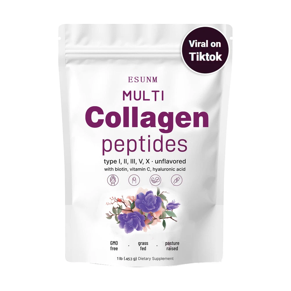Multi Collagen Peptides Powder Hydrolyzed Protein Peptides Type I II III V X 1LB