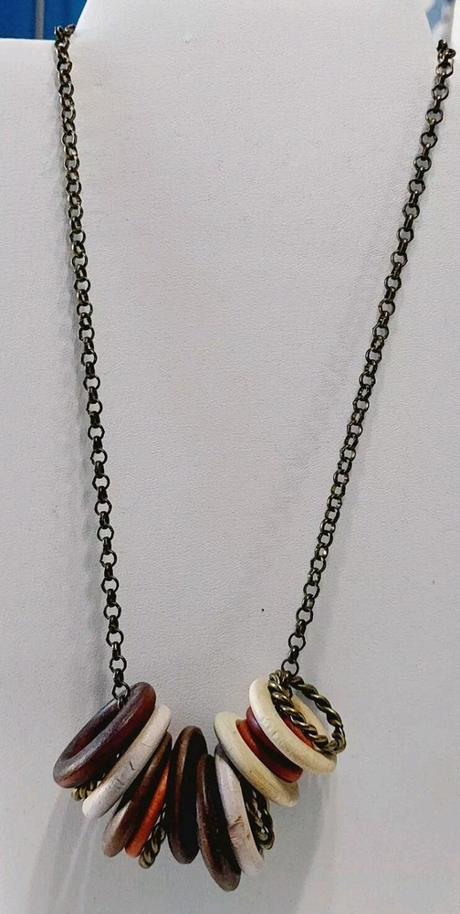 Multi Color Wood Rings Brown Chain Necklace Choker