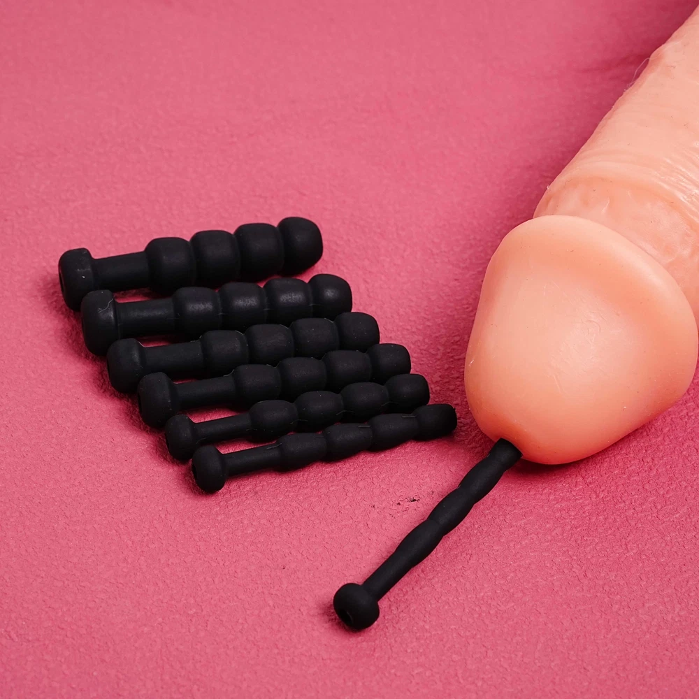 Private Shipping BDSM Penis Plug Urethral Insertion Extender Expansion Dilator Sounding Silicone Sex Aid Adults Sex Toys US Shipping Specific ations: Color: Black Gender: Male Material: Silicone Sizes:As shown in the picture Description: 1. Made of high quality silicone, odorless and non-toxic, giving you a smooth and soft touch experience. 2. Easy to use, suitable for most novice, intermediate and expert players. 3. Ergonomically designed, lightweight and hollow, brings the most comfortable experience. 4. Waterproof design, can be easily cleaned in water! Package includes: 1 x Penis plug