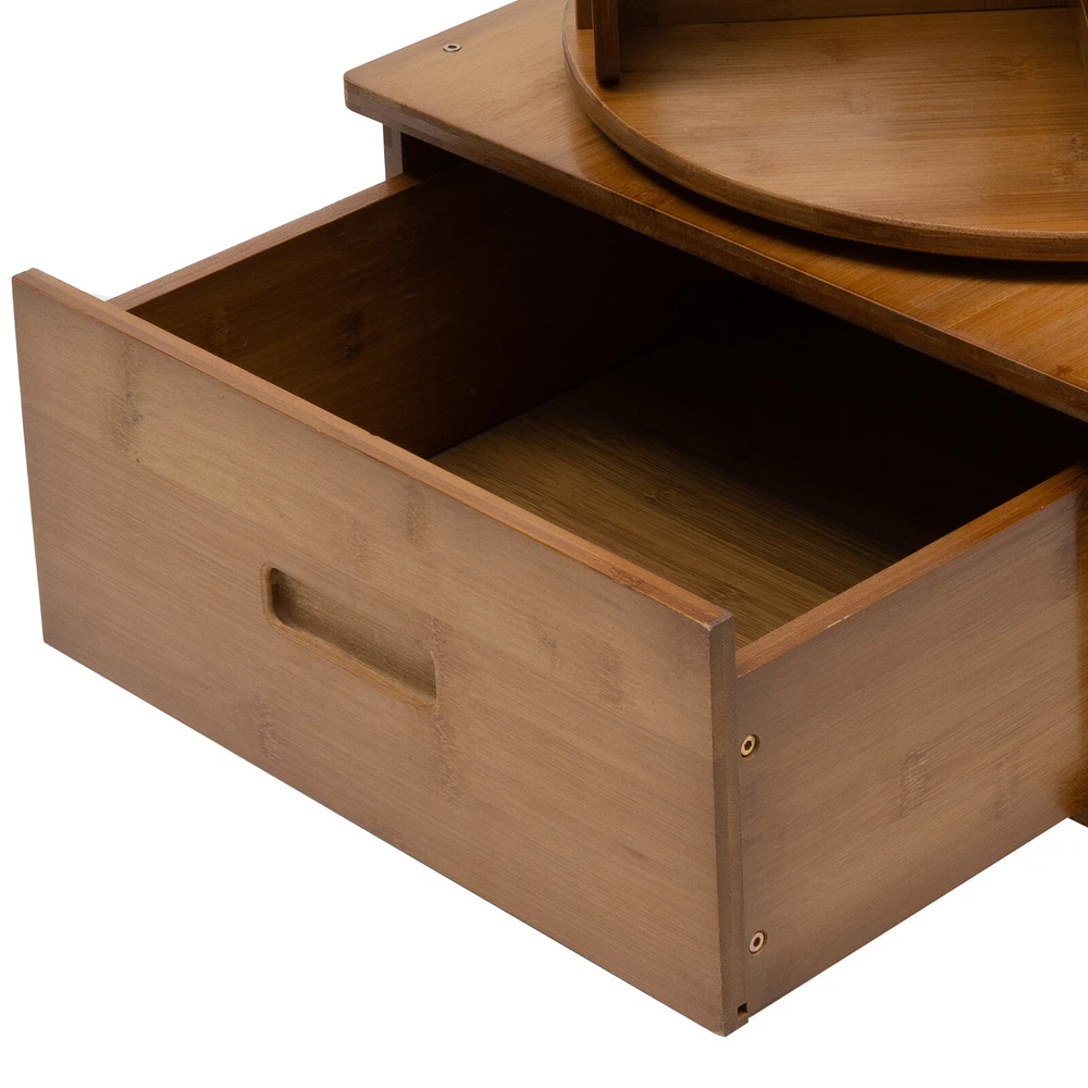 Specification Material: Bamboo Process: Painting Color: Tea Color Shape: Round Assembly Required: Yes Mount Type: Floor Standing Number of Tiers: 2 Number of Compartments: 8 Rotation: 360° Each Tier Bearing Capacity: 15kg/33.07 lbs Tier Height: 27cm/10.6in Base Height: 15cm/5.9in Top Diameter: 40cm/15.7in Overall Size(L*W*H): 41*41*81cm/16.1*16.1*31.9in Package Included 1 * Rotating End Table 1 Pair * Gloves All Accessories for Installation Multi Storage Table, Side Table with Rolling Wheels, Removable Swivel Bookcase Description Are you still worried about having too many books and too much clutter, with nowhere to put them? Multi-layer rotatab le rotating end table can be a n easy solution for you. Multi-layer and large-capacity product can be partitioned and planned, so you can say goodbye to a cluttered life. The design with wheels allows you to place it at will, providing you with higher freedom of use. Key Features Sturdy and Durable: It is made of natural bamboo with a painting process, which has a hard texture, wear resistance and durability, clear grain, dense structure, strong elasticity and toughness, but also is environmentally friendly . Handy Access: The fixable universal wheels on the bottom of the product allow you to push it to any safe position. In addition, the 360° rotating turntable provides you with the possibility of accessing items at multiple angles. Space-saving: With its cylindrical structure and vertical design, this product has a small footprint( 16.1*16.1inches ) and can be placed in all corners to create a tidy space. Strong Load-bearing Capacity: High-quality materials, quadrilateral base, and cylindrical stable structure make the product have up to 33 lbs load capacity per tier, providing more stability for your items to be placed. Storage Assistant: Double-layer structure, eight storage compartments and one drawer can provide you with more diversified storage options. The top panel also provides a separate storage space for your various storage needs . Exquisite Appearance: It is designed in a simple yet sophisticated style that complements a variety of interior decorating styles. Both modern minimalist and traditional Chinese styles can be greatly combined with it. At the same time, the bamboo material itself has a natural and warm aesthetic, so you can enjoy the visual pleasure when you use it. Easy to Clean: The smooth surface, simple construction and removable design of the product make it easy to quickly remove dirt and stains from the surface with a damp rag . Good Customer Service: We stand behind all our guests and look forward to assisting you with your purchase. It is our pleasure to answer your confusion and questions. The end of the story between us is not "we sell and you buy". Details Silent Stainless Steel Turntable: The turntable features a stainless stee l turntable an d steel bearings for stability and durability. Thickened Base: The base is designed with a cabinet (16.1*16.1*5.9in) for load-bearing stability, which is not easy to collapse and not easy to dump shaking. Curved Baffle: Semi-closed baffles make items less likely to fall. Rounded Corners: The rounded corners are carefully polished to care for your skin and avoid scratches during use. Application It can be suitable for any space, such as a living room, bedroom, or study office, as well as shopping malls, hotels, product displays, and so on. Specification Material: Bamboo Process: Painting Color: Tea Color Shape: Round Assembly Required: Yes Mount Type: Floor Standing Number of Tiers: 2 Number of Compartments: 8 Rotation: 360° Each Tier Bearing Capacity: 15kg/33.07 lbs Tier Height: 27cm/10.6in Base Height: 15cm/5.9in Top Diameter: 40cm/15.7in Overall Size(L*W*H): 41*41*81cm/16.1*16.1*31.9in Package Included 1 * Rotating End Table 1 Pair * Gloves All Accessories for Installation Notes Please avoid soaking this product in water and exposing it to sunlight. Please allow the slight color difference caused by the shooting light and the 1-3 cm error due to manual measurement, and make sure you do not mind before ordering. Payment Delivery details Terms of sales About us Contact us Payment We accept ebay payment 。 Fees such as import duties, taxes are not included in the item price or shipping costs. These charges are the buyer's responsibility. Delivery details Shipping: 2-9 working days to: USA Terms of sales We maintain high standards of excellence and strive for hundred percent customer satisfaction. Feedback is very important to us. We hope that you contact us immediately before you give neutral or negative feedback, so that we can address your concerns. It is impossible to address issues if we do not know about them! About us Your satis faction is our ultimate goal. We work hard to earn your trust and future business. Our certified technicians have tested each item before shipping. The unit comes with 1 year limited warranty on all manufacturing defects. a) If you receive a defective item, you may return it or ask for a discount. Please contact us within 14 days after you receive the package. b) What you returned must be intact and in its original packaging as re? u. Customer is responsible for shipping costs of the returned item. c) We will cover the cost of shipping back t with the shipping rate indicated in the registration page. We will send you a new unit or refund the full payment you paid. Thank you. Contact us Business Hour Business Hour: Monday To Friday: 8:30 AM to 5:00 PM (Beijing China time) Due to time zones, our reply to your questions may not be immediately. But within above working time, we will reply your email within 24 hours. If it's non-workdays, please kindly be patient and wait till Monday. Please contact us with ebay message. Please feel free to contact us if you have any questions. Monday To Friday: 8:30 AM to 5:00 PM (Beijing China time) Due to time zones, our reply to your questions may not be immediately. But within above working time, we will r