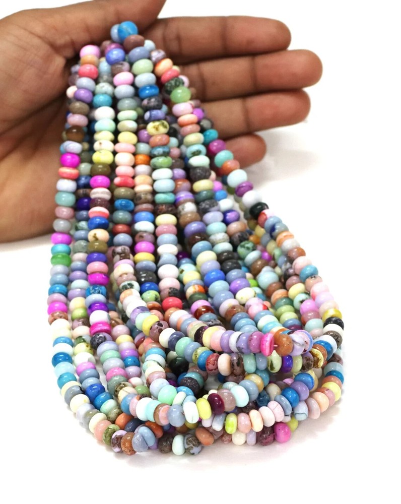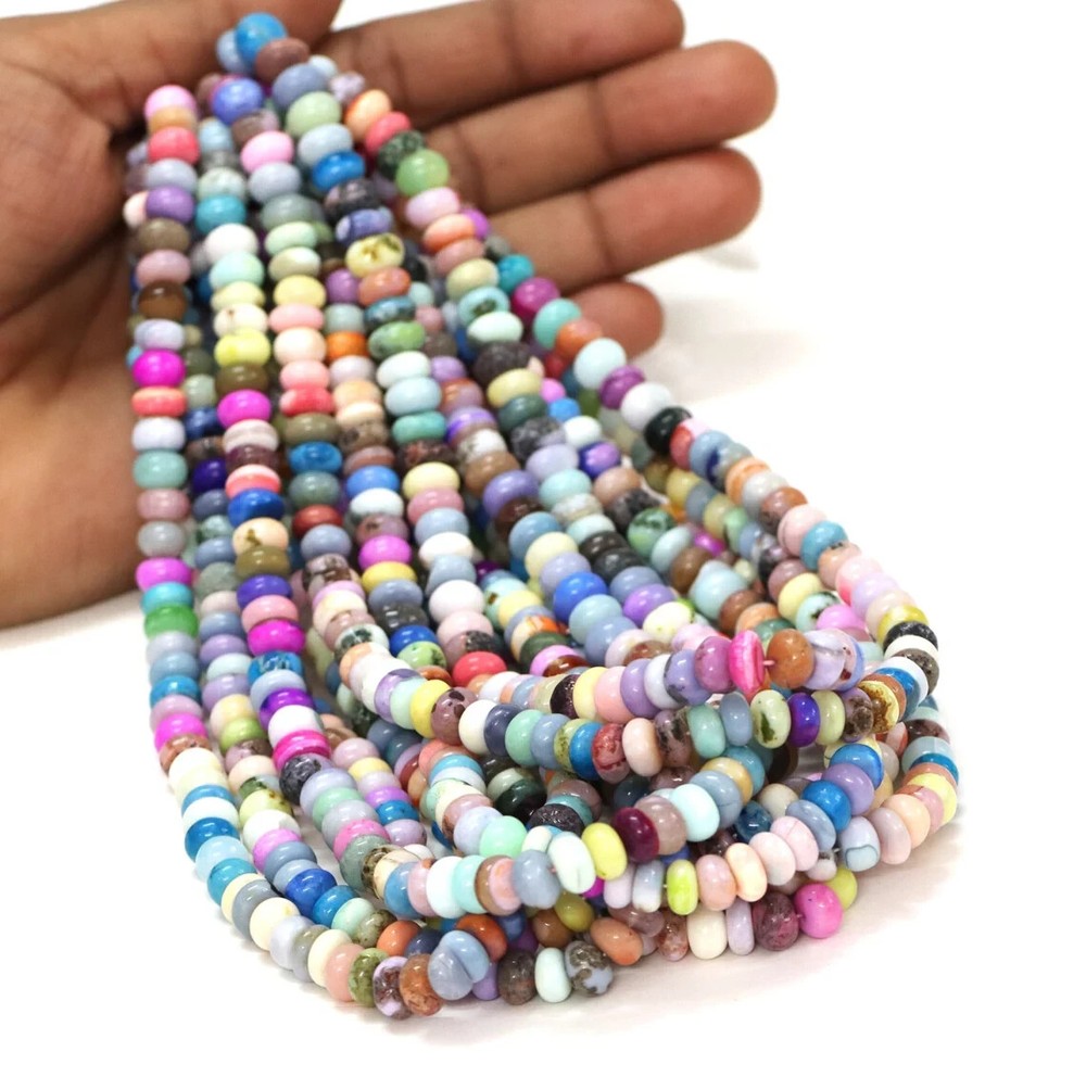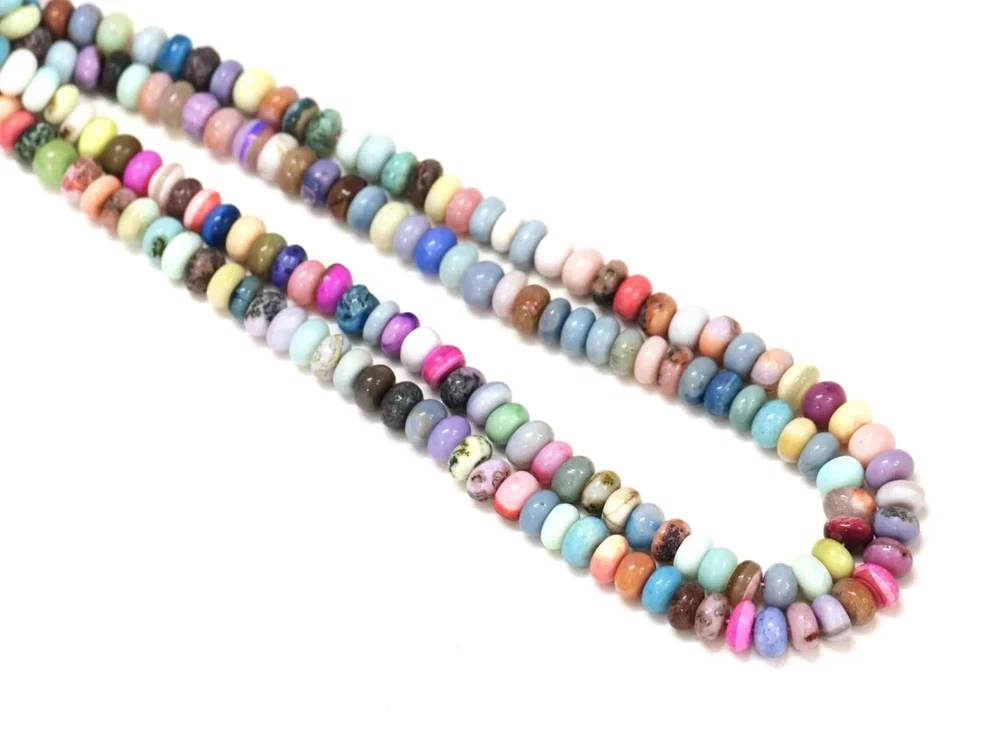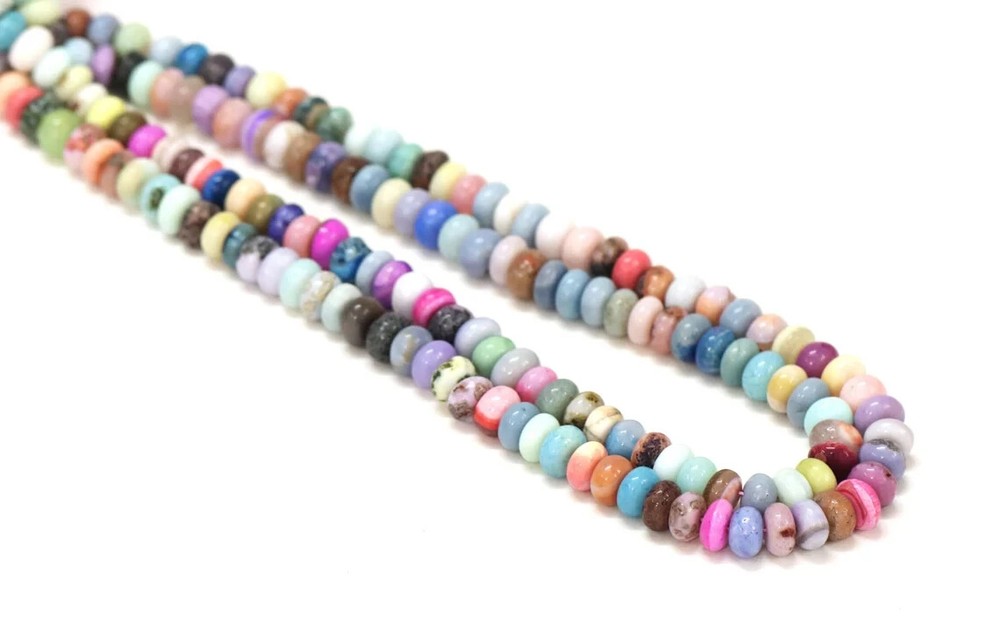 Made by Radhikagemsnbeads Supplies for making crafts Delivery from a small business in India Materials: Gemstone Bead hole size: .50 millimetres Beautiful Multi Disco Color opal smooth rondelle shape beads, 16” 7-9mm Mix Opal gemstone beads, AAA quality opal bead. jewelry making craft Gemstone : Opal Beads Color : Multi / Mix Disco color Size : 7 mm to 9 mm approx. Shape : Rondelle Style : Smooth Handmade Beads Quality : AAA For : Necklace, Jewelry Design, Craft Making, Gift,Etc. Length : 8 / 16 Inches