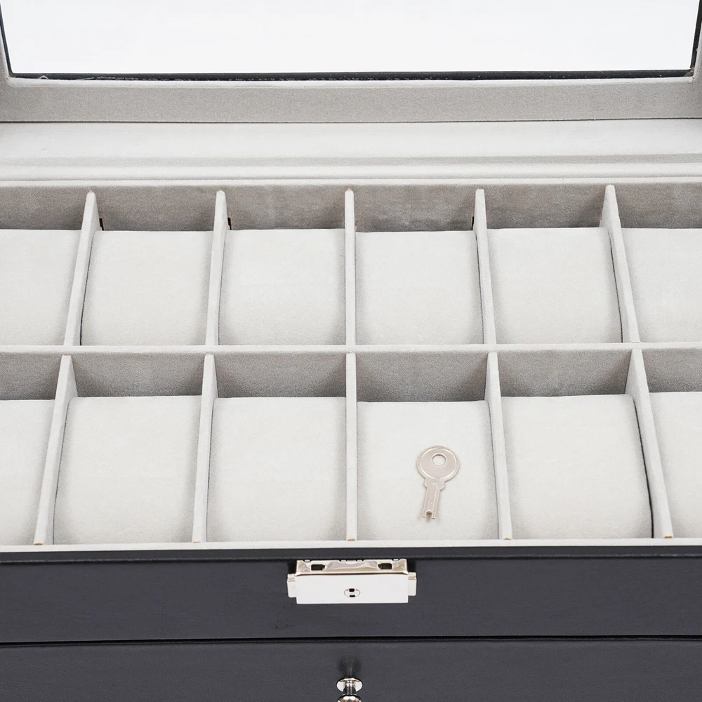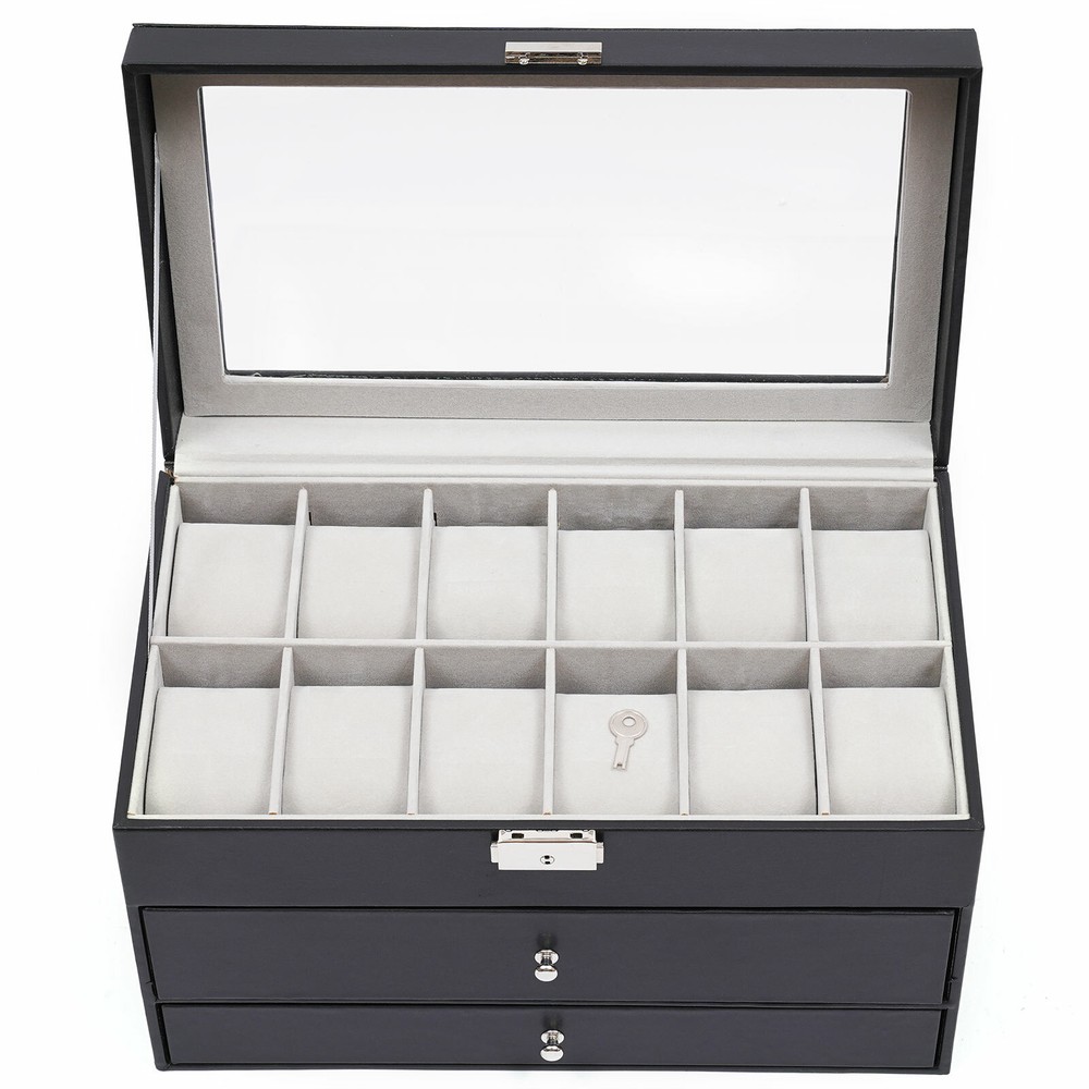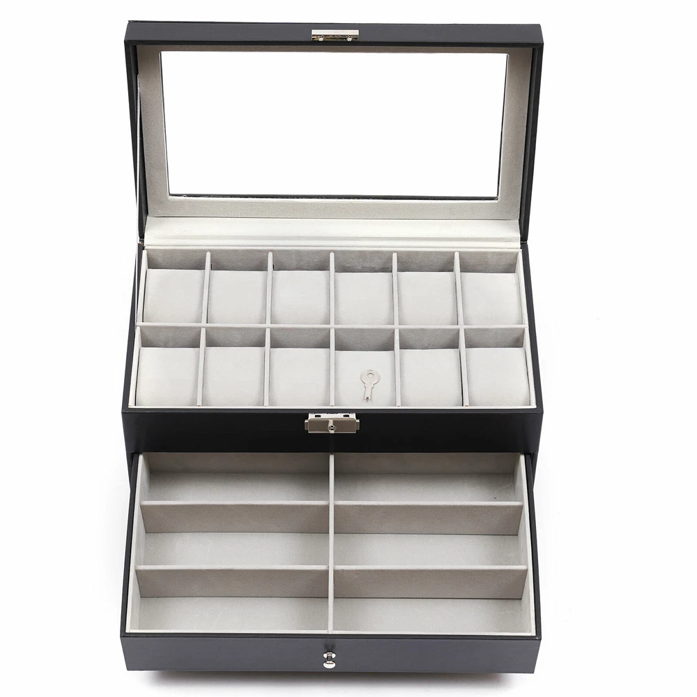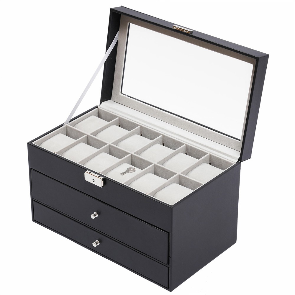 Absolutely love this organizer! The three spacious layers keep my watches, sunglasses, and jewelry neatly separated and protected. The glass top looks elegant and the sturdy construction feels durable. It's both practical and stylish.