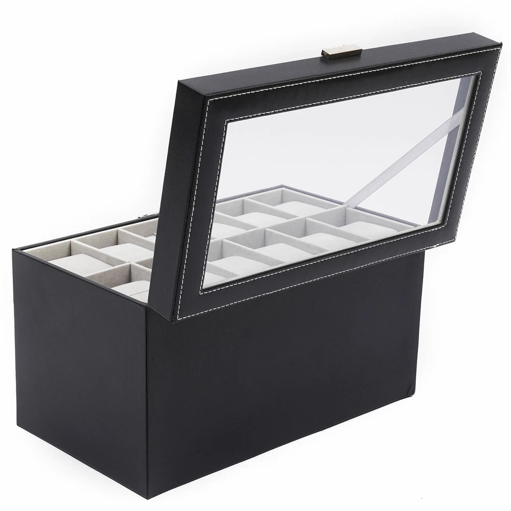 Watch Display Box & Jewelry Storage Case Multi-Purpose Organizer Box w/Glass Top Features: 1.Material:high Quality Pu Jewelry Box , Attractive Appearance,Simple Structure,Fine Workmanship and Sturdy Construction 2.Capacity: Metal Lock and Three Layers,First Layer Include 12 Slots to Storage Watch, Second Layer Include 6 Slots to Storage Sunglasses Third Layer Include 7 Slots and a Ring Slots to Storage All Kinds of Jewelry. 3.Design:divided into Plenty of Unit Space Which Are Easy to Clean and Maintain,It Will Keep Your Watches and Eyeglasses & Sunglasses Securely 4.Safety:this Elegant Jewelry Case Allows You to Show Your Glasses and Watch and Other Jewelry While Protecting Them Away from Dust,Fingerprints,Scratches and Thieves 5.Wonderful Gift:practical Function with Beautiful Appearance, Safety Lock with Key Adds Security. Amazing Gift for Valentine's Day, Mother's Day, Thanksgiving, Christmas, Birthdays and Weddings. (Note: Watches and Jewelry Are Not Included.) Product Specification: - Material: High Grade Pu Leather,Medium Density Fiberboard - Window: Glass - Color: Black - Product Dimensions (L X W X H): 33.7*19.4*20.5cm/13.26*7.63*8.07inch -Weight:3kg Packaging List: - 1 X Jewelry Display Box Payment Delivery details Terms of sales About us Contact us Payment We accept ebay payment 。 Fees such as import duties, taxes are not included in the item price or shipping costs. These charges are the buyer's responsibility. Delivery details Shipping: 2-9 working days to: USA Terms of sales We maintain high standards of excellence and strive for hundred percent customer satisfaction. Feedback is very important to us. We hope that you contact us immediately before you give neutral or negative feedback, so that we can address your concerns. It is impossible to address issues if we do not know about them! About us Your satis faction is our ultimate goal. We work hard to earn your trust and future business. Our certified technicians have tested each item before shipping. The unit comes with 1 year limited warranty on all manufacturing defects. a) If you receive a defective item, you may return it or ask for a discount. Please contact us within 14 days after you receive the package. b) What you returned must be intact and in its original packaging as re? u. Customer is responsible for shipping costs of the returned item. c) We will cover the cost of shipping back t with the shipping rate indicated in the registration page. We will send you a new unit or refund the full payment you paid. Thank you. Contact us Business Hour Business Hour: Monday To Friday: 8:30 AM to 5:00 PM (Beijing China time) Due to time zones, our reply to your questions may not be immediately. But within above working time, we will reply your email within 24 hours. If it's non-workdays, please kindly be patient and wait till Monday. Please contact us with ebay message. Please feel free to contact us if you have any questions. Monday To Friday: 8:30 AM to 5:00 PM (Beijing China time) Due to time zones, our reply to your questions may not be immediately. But within above working time, we will reply your email within 24 hours. If it's non-workdays, please kindly be patient and wait till Monday. Please contact us with ebay message. Please feel free to contact us if you have any questions.