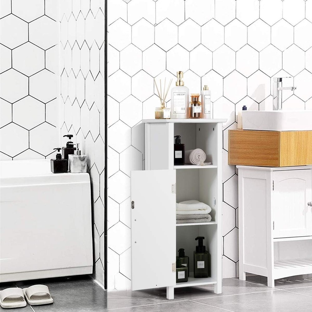 Product Description About this item • Multiple Storage Space: Frequently used bath essentials, such as toilet paper, towels, are able to be put in the doorless storage space of this floor cabinet for easy access. In the meantime, infrequently used items, like detergent, brushes, cleanser, are better to be stored behind the door, kept away from moisture. If you decide to use it as a side cabinet, then you can place album or other artworks on the top of the cabinet for displaying. • Compact Yet Practical Design: Measured 12” x 12” x 31.5” in size, this bathroom cabinet is absolutely great for small limited places. It won’t take much space in the room and will also add lengthwise storage space for storing more items to make the room appear tidier. Moreover, it allows you to install the anti-toppling fitting to the bathroom floor cabinet to avoid accidental toppling. If you happen to be in need of a floor cabinet with such size, ours would be your optimal choice. • Adjustable Shelf for Flexible Storage: The inner shelf is adjustable in three positions according to your preference, making the height of the storage space change with different shelf setting, allowing maximum space usage. • Easy to Assemble and Maintain: With the enclosed step by step instruction and necessary hardware, it is easy for you to have the bathroom floor cabinet installed in no time. Thanks to its smooth lacquered surface, it is convenient to clean and remove stains. • GLACER Promise: We proudly stand behind of this bathroom floor cabinet. If for any reason you are not satisfied with our floor cabinet, please contact us for solution and we are committed to making things right for you. We will respond within 24 hrs by offering feasible suggestion until problem is solved. Specification Color: White Material: MDF Net weight: 19 lbs Product dimensions: 12” x 12” x 31.5” (L x W x H) Weight capacity of each tier: 66 lbs Package includes: 1 x Bathroom storage cabinet 1 x Instruction Floor Storage Cabinet Ideal Storage Solution for Home Sicked of staying in a disordered room? Our exquisite and practical bathroom floor cabinet would be a right choice for you to start to own a tidy and clean room. With its chic and elegant appearance, it can also be used as a side cabinet to whether place it in the living room, adding a touch of elegance without any doubt! Features Minimalist yet practical design, matching most home decor Ample storage space, ideal for storing bath essentials, first aid kit, soaps, etc. Constructed of superior P2 MDF, assuring durability, stability, great load-bearing capacity Adjustable inner shelf for flexibility, storing things of different heights freely An open shelf for fetching daily toiletries easily Lacquered surface designed to withstand the humidity, making it suitable for bathrooms Ideal for bathroom, living room, kitchen, entryway, hotel, inns Easy to assemble with detailed instruction and enclosed hardware set On Aug 14, 2025 at 21:37:35 PDT, seller added the following information: