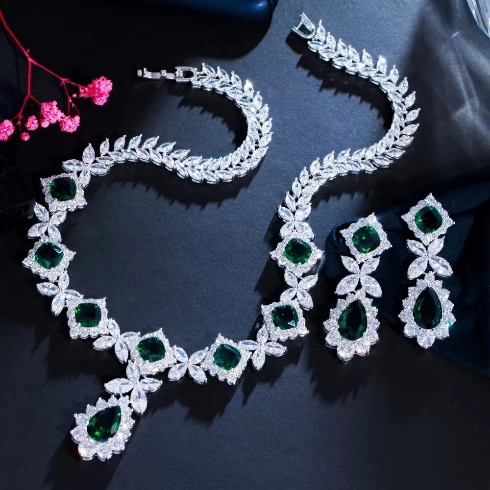 Gemstone Clarity Grade: Eye Clean Country/Region of Manufacture: United States Brand: horizonstarjewel Material: Stone, Metal Main Stone: Emerald Metal Purity: 925 Style: Tennis Certification: N/A Main Stone Treatment: Not Enhanced Main Stone Creation: Lab-Created Theme: Angels, Art, Awareness, Beach, Beauty, Biker, Birds, Colleges & Universities, Fairytale & Fantasy, Family & Friends, Fashion & Costumes, Hip Hop, Love, Luck, Magic, Music & Dance, Nature, Sea Life, Sports, Travel & Places Personalize: Yes Type: Wedding Necklace Total Carat Weight: 59 ctw Chain Type: Marquise Diamond Clarity Grade: Very, Very Slightly Included (VVS1) Cut Grade: Excellent Seller Warranty: Yes Country of Origin: United States Secondary Stone: Diamond Number of Gemstones: N/A Wholesale: Yes Features: Nickel-Free Number of Diamonds: Multi Pendant Shape: Flower Occasion: Anniversary, Birthday, Christening, Christmas, Confirmation/Communion, Engagement, Father's Day, Graduation, Mother's Day, Valentine's Day, Wedding Signed: Yes Main Stone Color: Green & White Personalization Instructions: We offer lengths ranging from 14 to 24 inches, including all middle sizes. Pendant/Locket Type: Charm Setting Style: Prong Necklace Length: 18 in Diamond Color Grade: D Customized: Yes Metal: Sterling Silver Main Stone Shape: Multi-Shaped Closure: Box Base Metal: Fine Silver Colored Diamond Intensity: Fancy Color: White