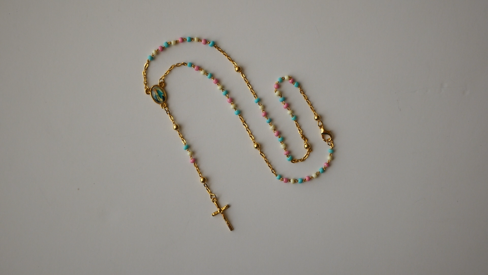 I purchased a lovely 'new' Catholic Rosary necklace. It is a very dainty and unique pice. Seller The price was very reasonable, and the Seller packaged and shipped the item quickly. Thank you for my unique purchase. V