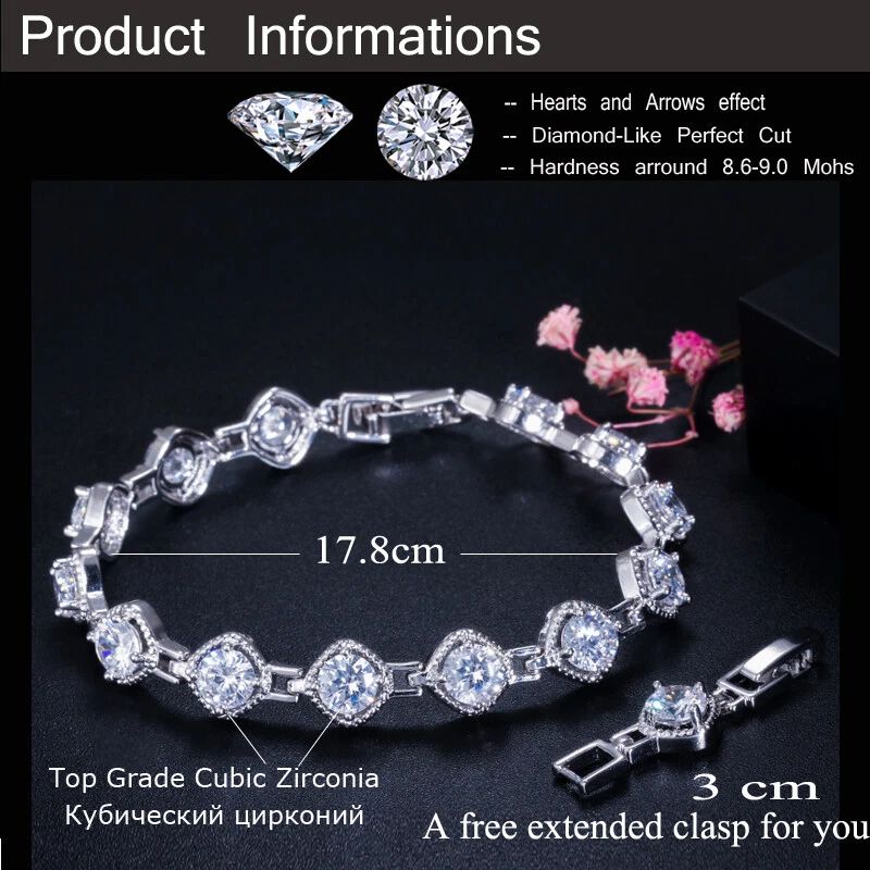 Multicolor Bracelet Cubic Zirconia Sqaure Tennis Link Chain Silver Plated Bangle Specifications: 1. Condition: New 2. Material : Cubic Zirconia 3. Bracelet Length :17.8 cm + 3 cm (Extended Clasp) Features: 1. Cubic Zirconia High Quality Material - Diamond-like Brilliance , Prong Setting and CZ Stone are stable. 2. A Perfect Jewelry Gift for Women , Girls , Mother , Wife , Lover , Fiancee , Friends . 3. Suitable for Various Occasions: Ideal for Wedding, Prom, Pageant, Parties, Homecoming, Black Tie Formal Affairs, Holidays , Birthday , Christmas , Valentine's Day , Anniversary and Special Occasions. Package Includes: 1Pc Bracelet Payment Delivery details Terms of sales About us Contact us Payment 1. We only accept payment by Paypal 2. We request you pay within 5 days of the first auction close. Failure to do so may cause our automated dispute system to file disputes for unpaid items Delivery details We only send items to the registered eBay address.Items will be shipped within 2 business days from the date payment is received (not include public holiday and weekend) . As per eBay regulations, import duties, taxes, and customs charges are the buyer's responsibility. Please check with your country's customs office to determine what these additional costs may be prior to bidding or buying. Terms of sales After-Sale Please contact us to request a return/replace/refund authorization.It will be best if you use ebay message to contact me. 1, Return and replacement request is available only the requests within 30 days after parcel received. 2, Returning the item as the same condition as received. Situation and solution Defectives ---Please contact us and provide a photo of the defective part. After situation confirmed,we will offer you refund/return/replacement according to the situation Not as Described ---Please contact us and provide a photo of the wrong part. After situation confirmed,we will offer you refund/return/replacement according to the situation Not Received ---Please undersatnding shipping on the way was out of our control ,because of the busy shipping season,holidays,bad weather or force majeure etc. It may be delay for days. But if it took too much time and not deliveried, Please message me, I will offer you solution for it. About us Working time: Chinese time(Eastern eight zones):Monday to Friday ,9:00 am to 6:00 pm. We do not work on chinese legal holiday. Message reply: We will reply all messages within 24 hours of business time. Contact us Please contact us via ebay message, it was the best way for both you and us to solve problems. Any questions or anything you need, please feel free to contact us.