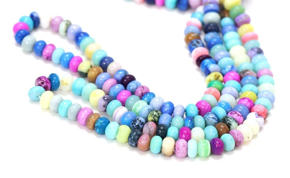Made by Radhikagemsnbeads Supplies for making crafts Delivery from a small business in India Materials: Gemstone Bead hole size: .50 millimetres Beautiful Multi color opal smooth rondelle shape beads, 15" 6-9mm Multi color Opal plain gemstone Beads, AAA Quality opal Bead Jewelry Craft Gemstone : Opal Color : Multi color Size : 6 mm to 9 mm approx. Shape : Rondelle Style : Smooth Handmade Beads Quality : AAA For : Necklace, Jewelry Design, Craft Making, Gift,Etc. Length : 8 / 16 Inches