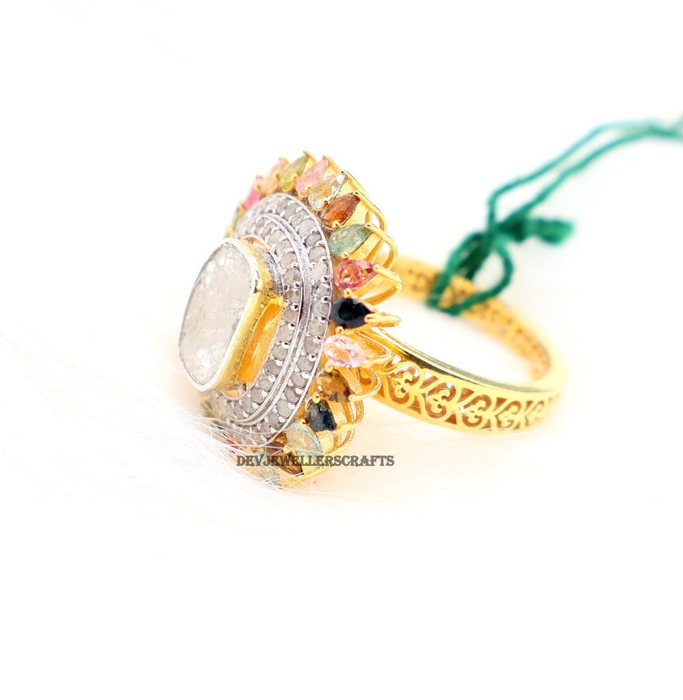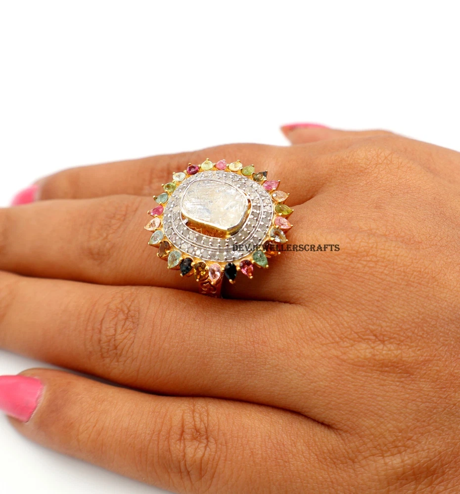 Created with Eselt - eBay Listing Templates Created with Eselt - eBay Listing Templates Our Store Seller Profile Feedback About us Contact Created with Eselt - eBay Listing Templates Multicolor Tourmaline & Pave Diamond 925 Sterling Silver Rose Cut Polki Ring. About Item ! Multicolor Tourmaline & Pave Diamond 925 Sterling Silver Rose Cut Polki Ring. Elevate your engagement with this luxurious gold-plated ring, featuring a stunning rose cut Polki diamond and sparkling pave diamonds with multicolor tourmaline. Crafted in 925 sterling silver, this ring combines traditional elegance with contemporary style. Features: Gemstones: Natural Rose Cut Polki Diamond & Pave Diamonds, Multicolor Tourmaline Metal: 925 Sterling Silver with Gold Plating (Durable and hypoallergenic) Style: Engagement Ring Design: Showcases a beautiful rose cut Polki diamond at the center, surrounded by intricate pave diamonds and Tourmaline for added brilliance, all set in a gold-plated sterling silver band Finish: Gold-plated for a rich, luxurious look Occasion: Ideal for engagements, anniversaries, or as a statement piece in any fine jewelry collection This exquisite ring offers a blend of classic and modern elements, making it a perfect choice for a memorable proposal or a special gift. The gold plating enhances the vintage charm of the Polki diamond and the sparkle of the pave diamonds, creating a truly standout piece. RETURN POLICY : Your satisfaction our priority. returns are available within 30 days of the item's arrival. 100% money back or exchange guarantee on. Shipping : we offer worldwide shipping item will be shipped within 2 day after payment is cleared. the delivery time usually takes 9 To 12 days & depending which country & location. Gemstone Shape : Rose Cut Ring Size : All Size Available Main Stone Color : White\Colorless Made in India Created with Eselt - eBay Listing Templates Created with Eselt - eBay Listing Templates Links Our Store Seller Profile Feedback About us Contact More items Are you looking for something similar? See our other items! Show more items Contact Give us a call Send us a message