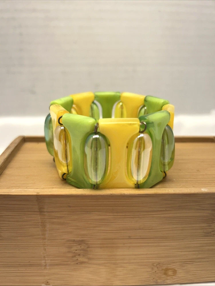 Material: Lucite Base Metal: Unknown UPC: Does not apply Theme: Retro Set Includes: Bracelet gtin13: Does not apply Color: Yellow/Green Type: Bracelet Seller Notes: “Excellent” Brand: Unbranded Metal: Unknown Main Stone Color: Multicolor