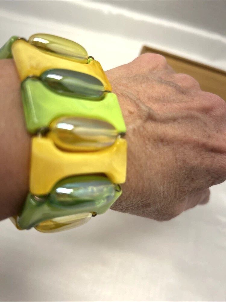 Multicolor Yellow Green Lucite Stretch Bracelet Very Retro 80's Unbranded