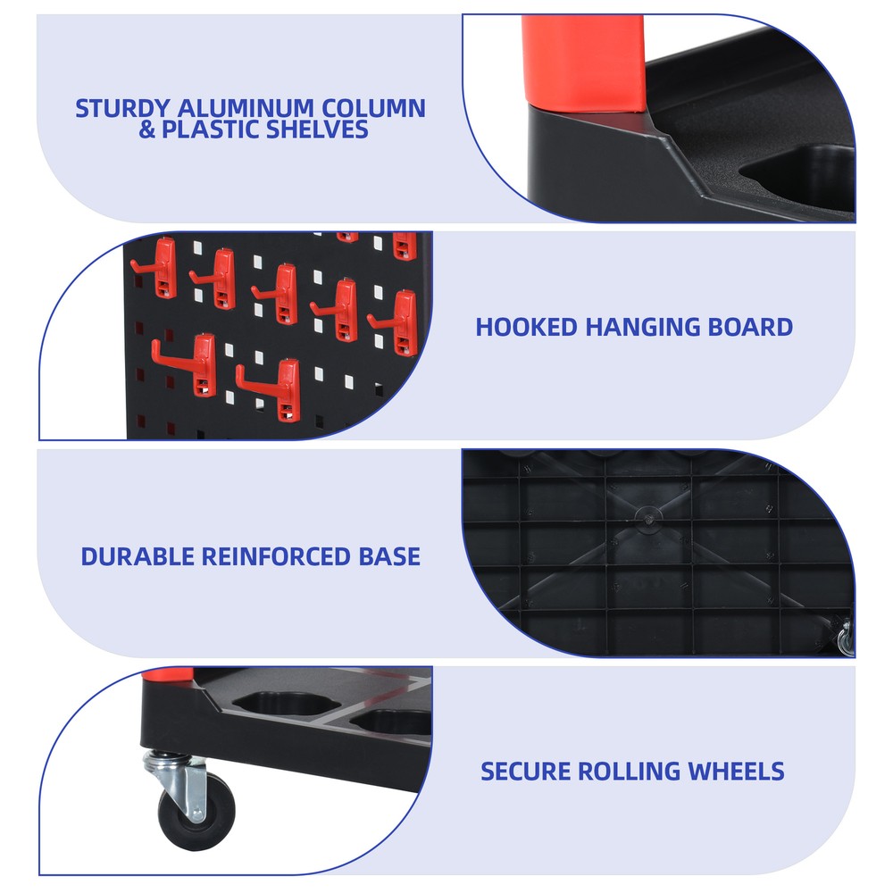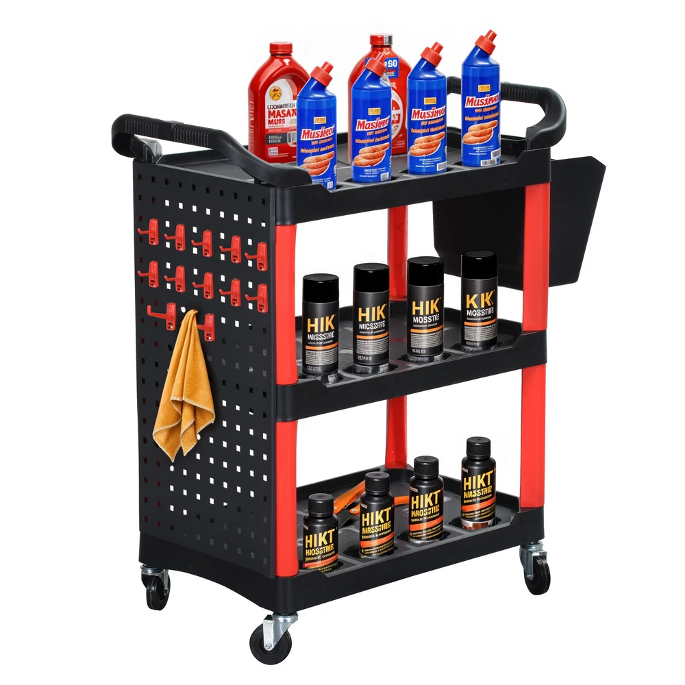 Multifunction Heavy Duty Auto Detailing Cart Car Wash Organizer Trolley w/ Hooks