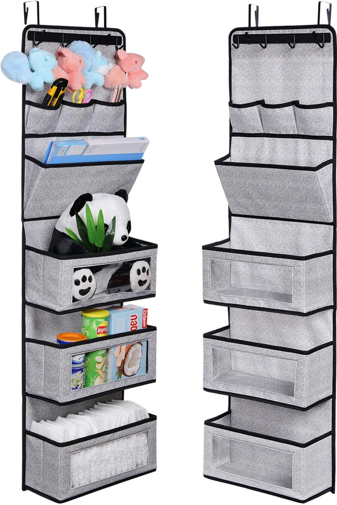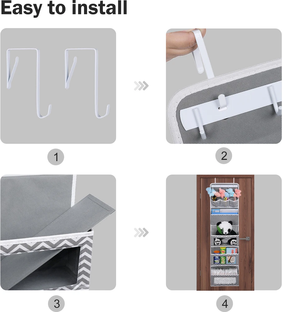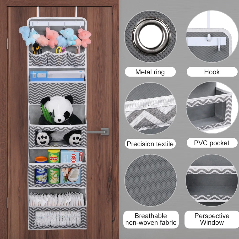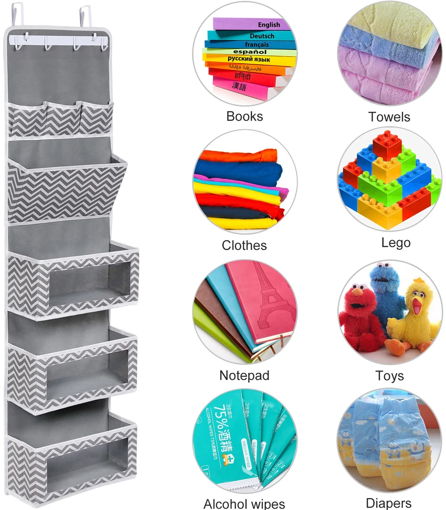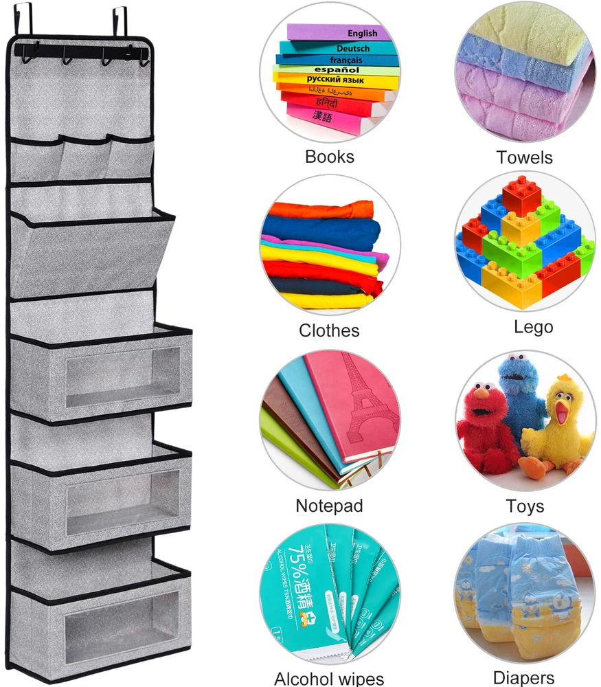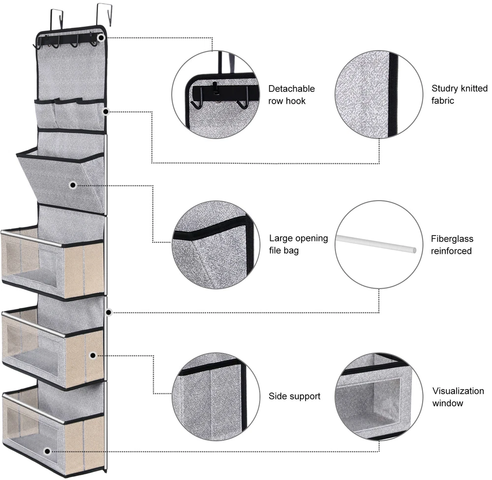 Multifunction Over The Door Hanging Organizer with Large Pockets and Metal Hooks