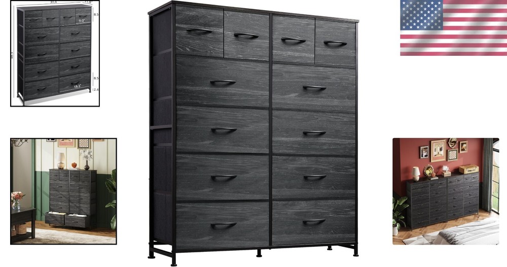 Color: Charcoal Black Personalized: No Item Width: Tall Dresser Item Height: Tall Dresser Item Length: Tall Dresser Finish: Charcoal Wood Tone: Dark Wood Brand: Unbranded Maximum Weight Capacity: 50 lb Number Of Pieces: 1 UPC: Does not apply Care Instructions: Clean with Dry Cloth, Wipe with Dry Cloth Number of Drawers: 12 Department: Adults, Teens, Kids Required Tools: No Tools Required Handle Material: Wood gtin13: Does not apply Item Depth: 11.8 in Type: Dresser Material: Engineered Wood, Steel Frame, Non-woven Synthetic Fabric Era: 21st Century (2000-now) Mounting Type: Floor Mount Distance from Floor to Bottom: Less Than 3 in Room: Bedroom, Closet, Living Room, Hallway, Playroom, College Dorm Shape: Rectangular Handle Finish: Charcoal Mounting: Free Standing Furniture Finish: Charcoal Product Care Instructions: Wipe With Dry Cloth Additional Parts Required: No Features: Waterproof, Portable, Space-saving, Breathable, Durable, Anti-tipping Size: 11.8"d X 39.4"w X 48.3"h Style: Contemporary/Modern Item Weight: 29.5 lb Product Dimensions: 11.8"d X 39.4"w X 48.3"h