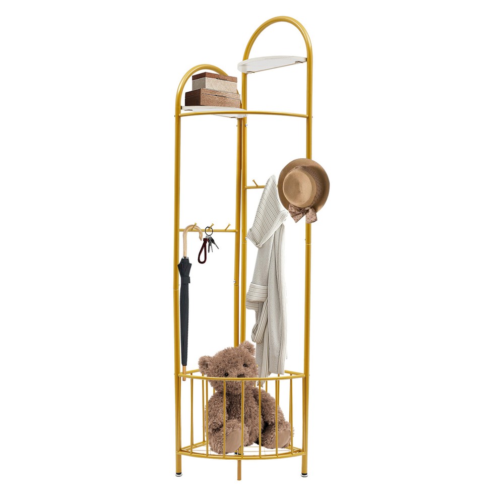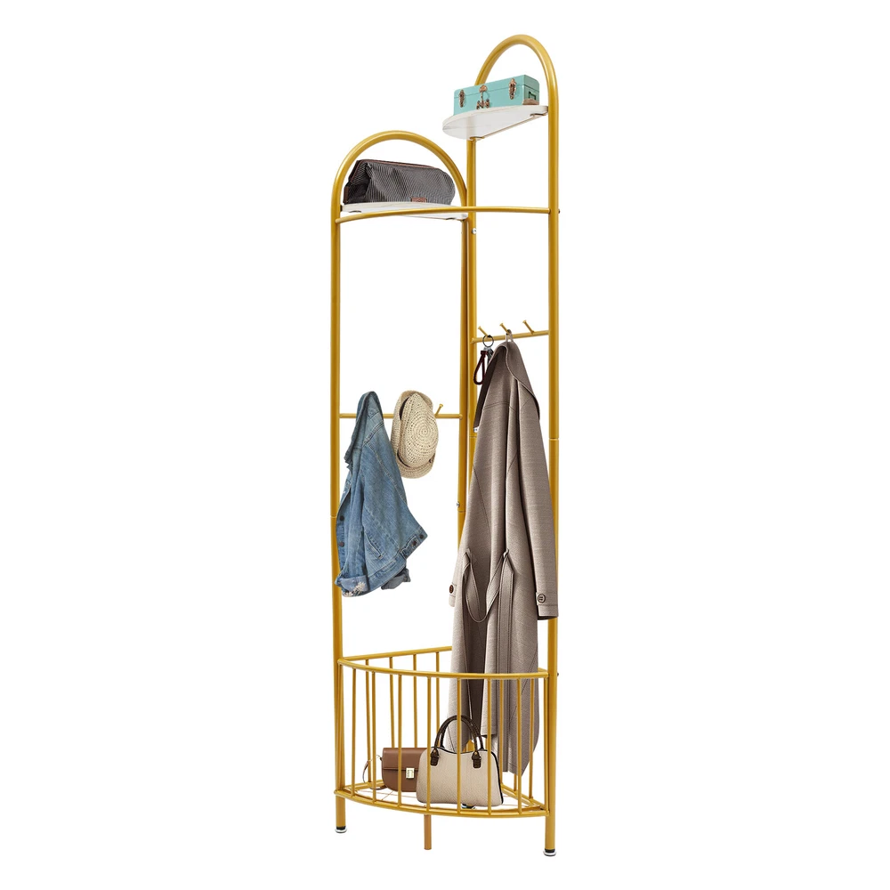 Specification Color: Golden Style: Modern Material: Iron Process: Spray Painting Assembly Required: Yes Number of Hooks: 6 Number of Plates: 2 Mount Type: Free Standing Total Load-bearing Capacity: About 30kg/66.14lbs Product Size(L*H): 50*172cm/19.7*67.7in Package Size: 92*37*11cm/36.22*14.57*4.33in Gross Weight: 4.5kg/9.92lbs Net Weight: 4kg/8.82lbs Package Included 1* Corner Coat Rack All Accessories for Installation Multifunctional Corner Clothing Rack Coat & Hat Rack Holder With Storage Basket Description Description A great coat rack is not only a caring steward for your clothes, but also an artistic accent to your home life. High-quality materials and exquisite craftsmanship make our corner coat rack sturdy and durable. The strong load-bearing capacity allows you to use it with confidence. With its fashionable appearance, it can embellish your room. In short, it is your storage assistant, creating a tidy home environment for you. Key Features Sturdy and Durable: Made of iron with a spray painting process, this product is wear-resistant , corrosion-resistant , and sturdy, ensuring your long-term use. Storage Assistant: The top two partitions allow you to place perfume, potted plants, and handicrafts(all are not included). The storage basket at the bottom can be used to store your clothes, shoes, or umbrellas(all are not included). 6 hooks with round ends allow you to hang scarves, keys, bags, and hats(all are not included). The curved clothes hanging pole can hang clothes, allowing you to store your clothes and items in zones. Strong Load-bearing Capacity: The thickened iron pipe and triangular structure make this product capable of bearing about 66.14 lbs, allowing you to use it with confidence. Space-Saving: It adopts a 90-degree corner design, which fits the wall corner and saves space. Fashionable Appearance: The top two fan-shaped designs with different heights, golden color tones, and smooth lines give this product a fashionable appearance, adding personality and beauty to your room, and creating a fashionable corner space design. Assembly in a Breeze: The simple structure and complete accessories allow you to easily and quickly assemble this product, saving time and effort. Effortless Cleaning: Thanks to the smooth surface, simple structure, and open design, you can easily wipe off the dirt on it with a soft cloth. Protective Package: To prevent the product from being damaged during transportation, we packed it with bubble bags to protect your products to the maximum extent possible. Good Customer Service: We stand behind all our guests and look forward to assisting you with your purchase. It is our pleasure to answer your confusion and questions. The end of the story between us is not "we sell and you buy". Details Open Frame: It facilitates accessing and placing clothes and items. Adjustable Foot Pads : 4 foot pads can be adjusted to adapt to uneven ground. Elevated Bottom: It makes it convenient for you to clean the bottom. Smooth Edge: The rounded and smooth edges not only add to the aesthetics of the product but also improve the safety of use. Application It can be used in hallways, bedrooms, living rooms, bathrooms, entryways, foyers, study rooms, laundry rooms, offices, clothing stores, apartments, hotels, dormitories, etc. It can be used to hang coats, scarves, keys, hats, school bags, handbags, wallets, suits, etc. It can be used to store clothes, shoes, or umbrellas, and can be used to place perfume, potted plants, handicrafts, etc. Specification Color: Golden Style: Modern Material: Iron Process: Spray Painting Assembly Required: Yes Number of Hooks: 6 Number of Plates: 2 Mount Type: Free Standing Total Load-bearing Capacity: About 30kg/66.14lbs Product Size(L*H): 50*172cm/19.7*67.7in Package Size: 92*37*11cm/36.22*14.57*4.33in Gross Weight: 4.5kg/9.92lbs Net Weight: 4kg/8.82lbs Package Included 1* Corner Coat Rack All Accessories for Installation Notes This product does not include other items. Please use this product within the load-bearing range. Please allow the slight color difference caused by the shooting light and the 1-3 cm error due to manual measurement, and make sure you do not mind before ordering. Payment Delivery details Terms of sales About us Contact us Payment We accept ebay payment 。 Fees such as import duties, taxes are not included in the item price or shipping costs. These charges are the buyer's responsibility. Delivery details Shipping: 2-9 working days to: USA Terms of sales We maintain high standards of excellence and strive for hundred percent customer satisfaction. Feedback is very important to us. We hope that you contact us immediately before you give neutral or negative feedback, so that we can address your concerns. It is impossible to address issues if we do not know about them! About us Your satis faction is our ultimate goal. We work hard to earn your trust and future business. Our certified technicians have tested each item before shipping. The unit comes with 1 year limited warranty on all manufacturing defects. a) If you receive a defective item, you may return it or ask for a discount. Please contact us within 14 days after you receive the package. b) What you returned must be intact and in its original packaging as re? u. Customer is responsible for shipping costs of the returned item. c) We will cover the cost of shipping back t with the shipping rate indicated in the registration page. We will send you a new unit or refund the full payment you paid. Thank you. Contact us Business Hour Business Hour: Monday To Friday: 8:30 AM to 5:00 PM (Beijing China time) Due to time zones, our reply to your questions may not be immediately. But within above working time, we will reply your email within 24 hours. If it's non-workdays, please kindly be patient and wait till Monday. Please contact us with ebay message. Please feel free to contact us if you have any questions. Monday To Friday: 8:30 AM to 5:00 PM (Beijing China time) Due t