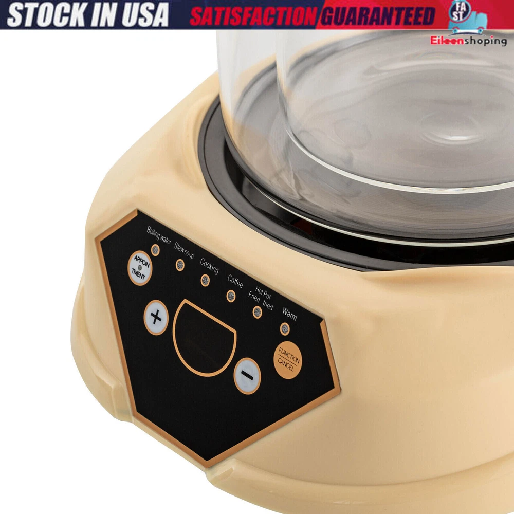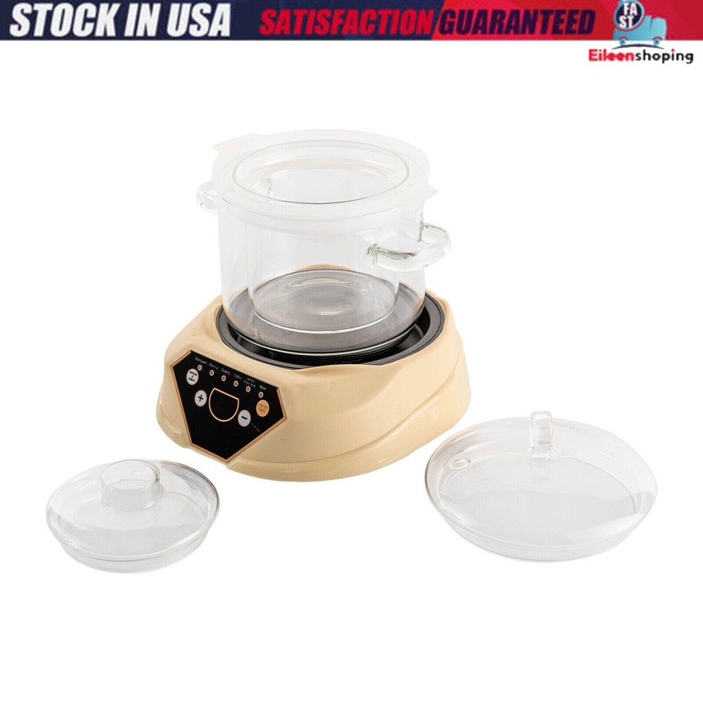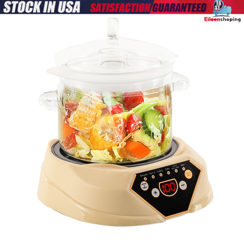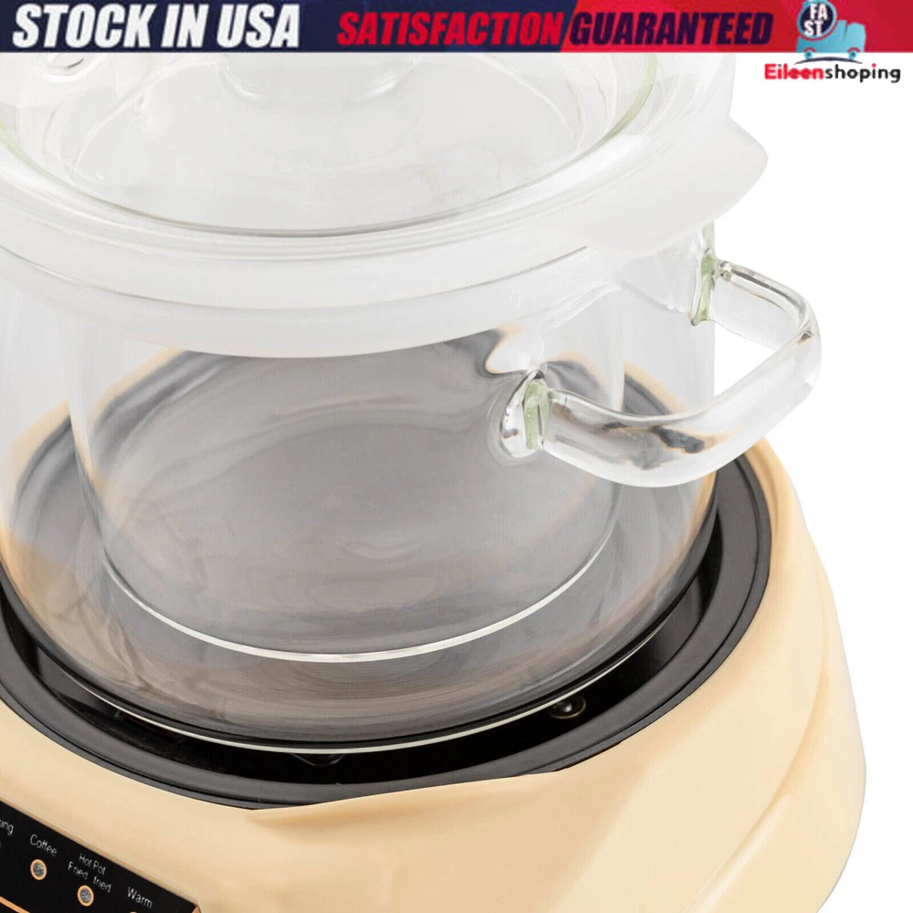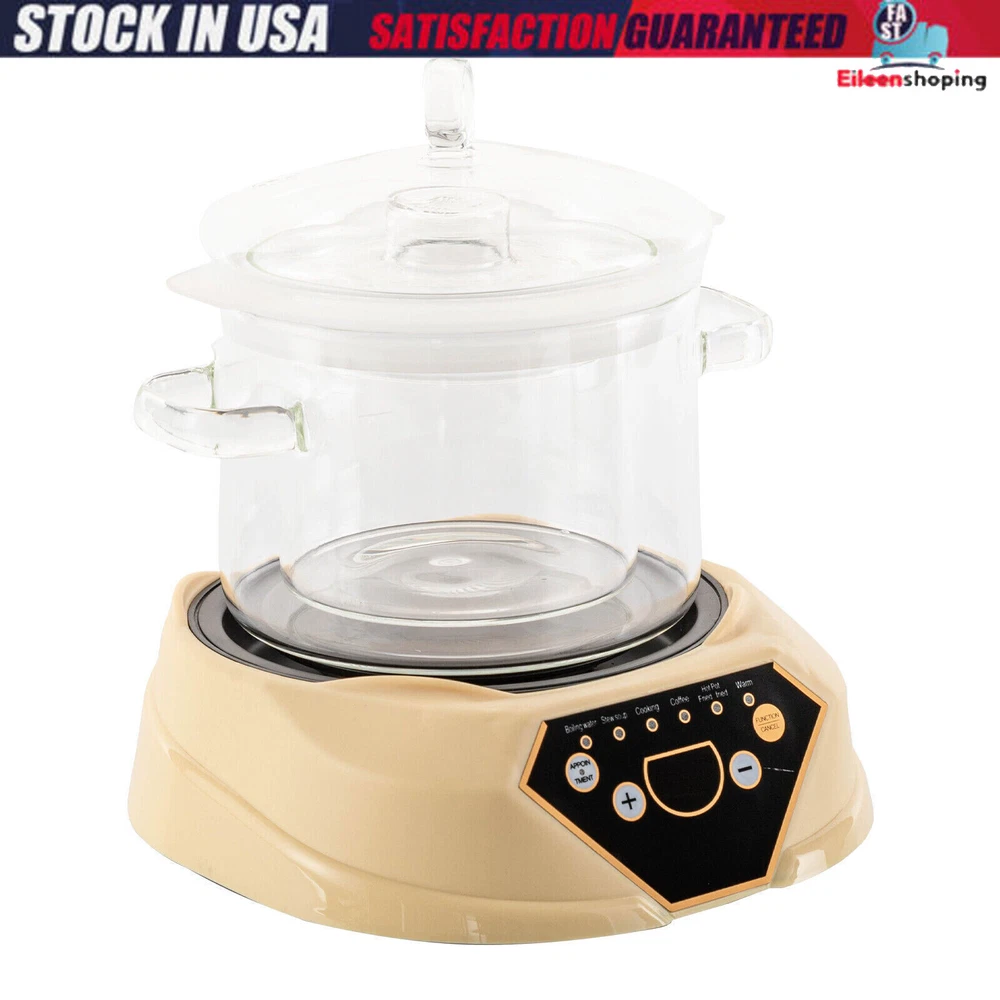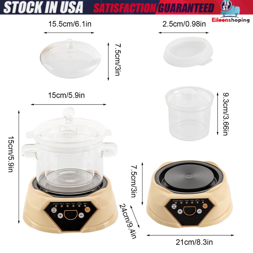 Multifunctional Health Pot Auto Electric Stew Pot For Making Tea Porridge Pot Specification Color: Clear, Cream Yellow Style: Modern Material: High Borosilicate Glass Plug Type: US Standard Power: 700W Voltage: 110V Frequency: 60Hz Power Source: Electric Controls Type: Panel Number of Items: 1 Maximum Temperature: About 300℃/572 °F Length of Power Cord: About 85cm/33.46inch Heat Preservation: 8 Hours Reservation Appointment: 30 Minutes to 12 Hours Capacity of Glass Pot: 1.6L/67.63oz Capacity of Glass Stew Pot: 0.8L/33.81oz Product Care Instructions: Hand Wash Gross Weight: 2.2kg/4.85lbs Net Weight: 2kg/4.4lbs Size of Base: 21*24*7.5cm/8.3*9.4*3inch Size of Glass Pot: 15(L)*15(H)cm/5.9*5.9inch Length of Glass Stew Pot: 15.5cm/6.1inch Height of Lid: 7.5cm/3inch Height of Container: 9.3cm/3.66inch Diameter of Base Top: 17cm/6.7inch Diameter of Heating Area: 12cm/4.7inch Package Size: 35.5*24.5*27.5cm/13.98*9.65*10.83inch Package Included 1* Glass Pot 1* Glass Stew Pot 1* Chinese Manual 1* Power Cord 1* Base Key Features High-quality Material : This port is made of high borosilicate glass with strong fracture resistance , high-temperature resistance , high hardness, transmittance, and stability, and does not pose a threat to the human body. The clear design also facilitates you to check the situation in time. High Efficiency: The product with an overall power of 700W adopts a whole circle of the heating plate, which can realize uniform and quick heating, so it can make fragrant and exquisite tea or coffee for you without waiting for a long time. Large Capacity: The port is equipped with a 1.6L/67.63oz glass pot and a 0.8L/33.81oz glass stew pot so that you can make enough coffee, tea, drinks, etc. at one time, which is very convenient. Multiple Functions: This port can be used to make fragrant tea, soup, porridge, stew, dessert, etc. At the same time, it also has the functions of heat preservation(8 hours), and reservation (30 minutes to 12 hours), which fully meet your daily needs, with high-cost performance. Safe to Use: The maximum temperature that the glass can withstand is 300℃/572 °F. At the same time, it has the functions of preventing high temperature, boiling automatic jump, preventing dry burning, etc, and it is designed to be airtight, providing a strong security for your use. Good Heat Dissipation Effect: The bottom is equipped with heat dissipation holes, which can timely reduce the temperature of the product during operation, avoid potential safety hazards, and extend the service life. Simple Operation: The product does not need to be assembled, and when you select a function, the product will have a beep prompt. It can be operated without complicated steps, saving you time. Quiet Environment: The product makes a low noise during operation, which will not affect you. You can fully concentrate on reading, working, etc. Beautiful Appearance: The product is designed with clear and cream-yellow color and smooth lines. It is full of modern and fashion sense and can match the living room and kitchen with various decoration styles. Easy to Clean: It adopts a split design and large diameter design and has a smooth surface and a simple structure, so you only need to wipe the dust or residue with a towel after use. Compact and Lightweight: The product is small, and the net weight is only 2kg/4.4lbs, so you can put it on the coffee table and kitchen at will without occupying much space, and it is also very convenient to move and carry. Ideal Gift: With good performance and fashionable appearance, this product can be used as a gift for parents, friends, and lovers, as well as as a housewarming and holiday gift so that they can also enjoy more exquisite drinks. Enjoy Life: With this product, you can make different foods and drinks for your family, especially for the baby and the elderly. The sense of ritual and happiness in life will follow. Details Solid Base : The base equipped with four anti-slip foot mats can ensure that the product is more stable and not easy to shake during use. Long Power Cord: This port is equipped with a power cord with a length of about 85cm/33.46inch, allowing you to have plenty of length at your disposal. Practical Sieve: The opening of the glass pot is equipped with a removable stainless steel sieve, which can effectively filter the residue and facilitate your cleaning. Glass Lid: The lid with a silica gel sealing ring is heat-insulated and hot-resistant , which can prevent dirt and dust from entering the container and avoid water leakage. The handle on the top is also convenient to open and close. In addition, the lid is also provided with a steam hole, which can maintain the stability of the air pressure in the pot. Double Ear Handles: These two handles are durable, easy to hold, and are convenient for you to move. Independent Power Socket: The socket is easy to clean, waterproof , and has a high safety factor. Display Screen: The operation panel of the product is equipped with a display screen, which can clearly display the time so that you can check the situation and make adjustments. Round Corners: This product adopts an arc design, which can effectively prevent your skin from being scratched compared with the traditional square corners. Application This health port can be widely used at the home, office, RV, party, and tea house for boiling tea, water, coffee, and milk, making soup, porridge, and dessert, stewing, cooking gruel, etc. Notes 1. Please read the operating manual completely before use. And pay particular attention to the safety instructions included. 2. Please note that the health pot shall be tested with clean water before delivery. It is normal that there may be water stains. 3. The surface of this product is very hot during operation, please do not touch it. 4. It is normal that smoke and a scorching smell appear after the machine is heated for the first time, which is the volatilization of new parts of the machine. This situation wil