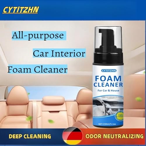 Return Policy Fast Delivery Trusted seller Multipurpose Car Interior Foam Cleaner for Seats, Carpets & Dashboard – Deep Cleaning Formula for Fabric, Leather, Plastic Surfaces | Car Detailing Kit & Upholstery Cleaner (5.1Oz/150ML) Product Description [Powerful Foam Cleaner for Deep Cleaning] The CYTITZHN Car Interior Foam Cleaner is specially designed to effectively remove dirt, grime, and stains from car seats, upholstery, and carpets. Its foam formula penetrates deep into fibers, lifting stubborn stains for a fresh and clean interior. [ Multi-Purpose Use for Versatile Cleaning] This foam cleaner is suitable for a variety of surfaces, including leather, fabric, carpets, and plastic trim. It can also be used on household furniture, making it a versatile cleaning solution for both car and home. [Easy Application & Quick Results] Simply spray the foam cleaner onto the desired surface, let it sit for a few minutes, and wipe away with a clean cloth. Its effortless application ensures quick and effective cleaning results. [Safe & Gentle on All Surfaces] The CYTITZHN foam cleaner is safe and gentle on all surfaces, including delicate fabrics and leather. It removes dirt and grime without leaving residue or causing damage. [ Ideal for Car Detailing & Home Use] Perfect for car detailing, this foam cleaner removes deep stains from car seats and interiors. It’s also great for cleaning household items, offering a complete cleaning solution for car enthusiasts and homeowners alike. Shipping Returns Payment Shipping Shipping is FREE to all addresses other than APO/PO boxes in the lower 48 states. All our stock ships from US-based warehouses. Shipped via USPS or UPS (depending on location and package weight) Unless stated otherwise, all orders will ship within 24-72 hours of your payment being processed. Check our feedback to see the great reviews of FAST shipping we offer. Returns Seller does not accept returns Payment We currently accept payment via eBay managed payments only. Once payment is cleared, we will dispatch your shipment within 1-3 business days. Please refer to the "Shipping" tab for more information regarding shipping speed to your destination.