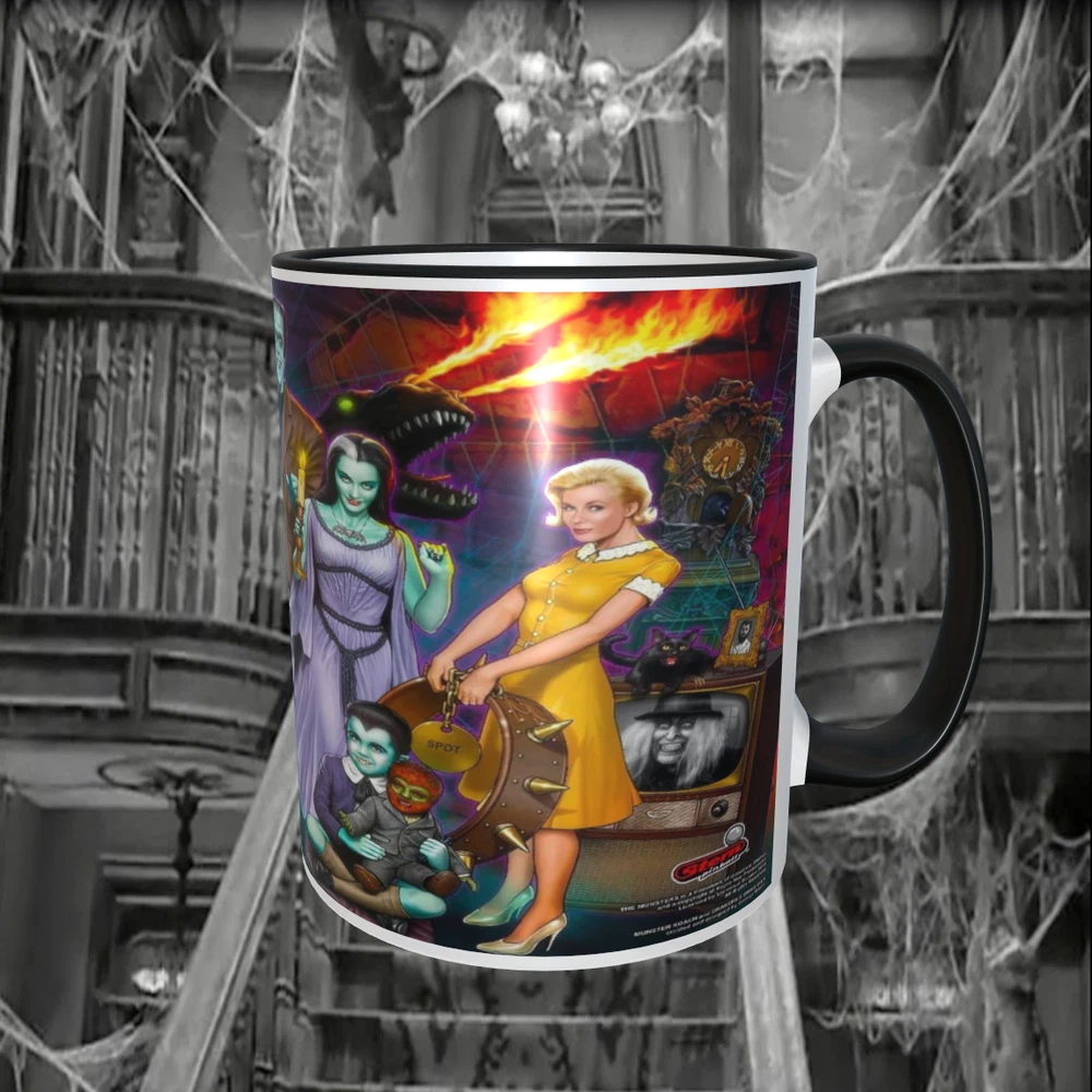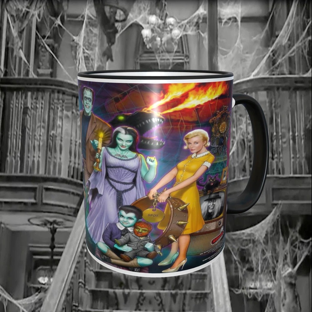 Munsters Pinball Marquee11oz Ceramic Coffee Mug NEW! Dishwasher safe Shipped with USPS Parcel Select Ground.